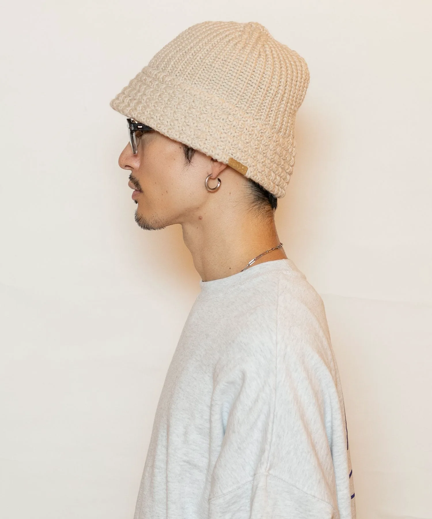 Изготовлена из 100% шерсти, вязание низкой плотности с рыхлой вязкой для грубой текстуры. Отверстие связано эластичными нитями, что обеспечивает удобную посадку.