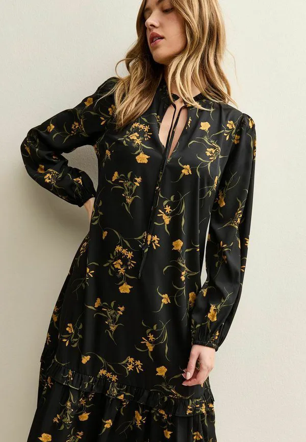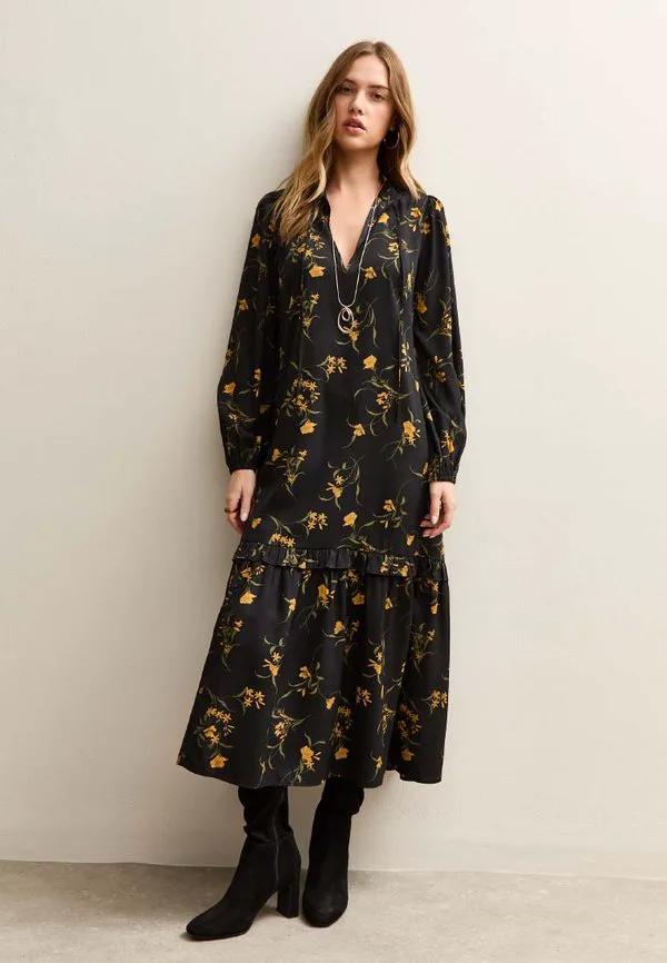 Платье-Рубашка миди с растительным узором New Look, Black Pattern