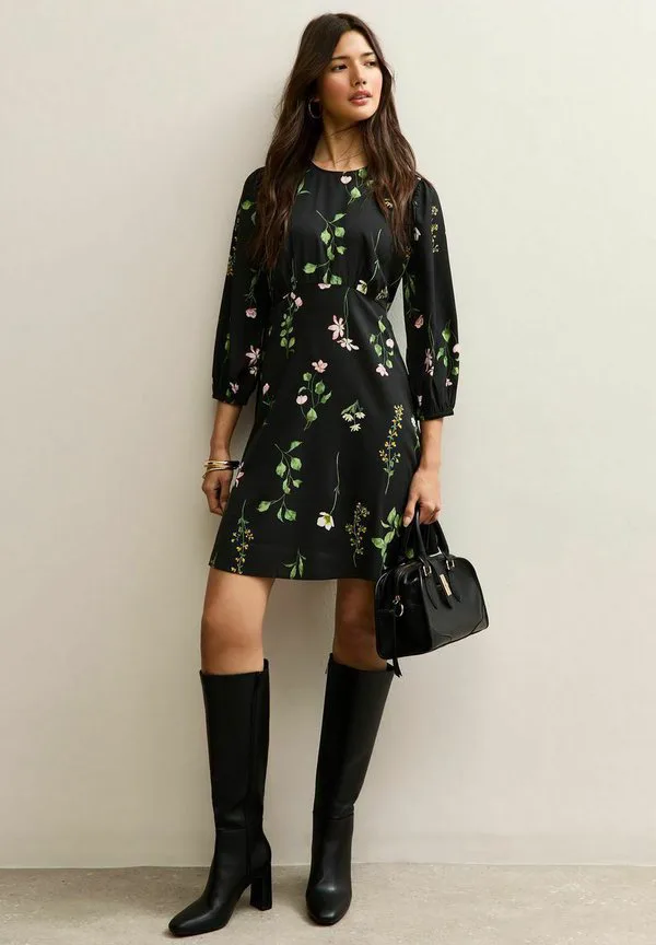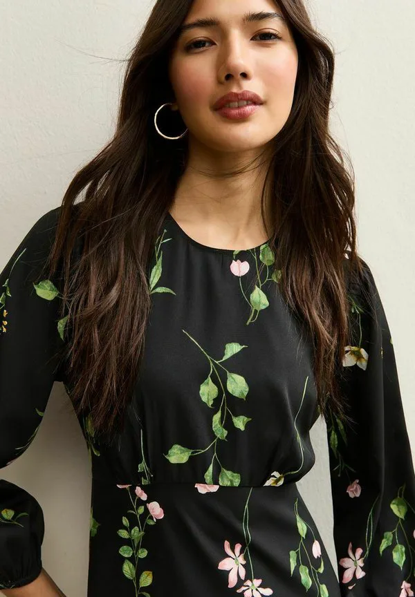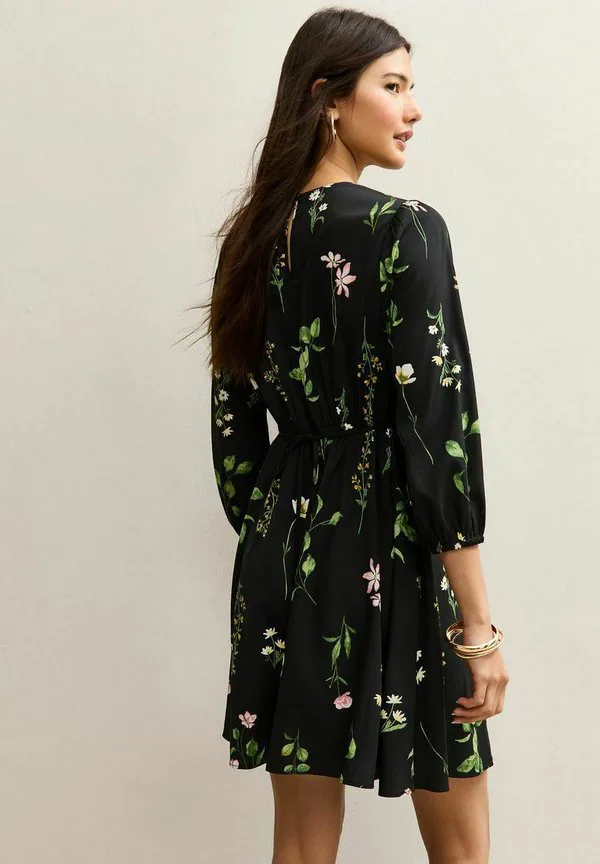 Мини-Платье с растительным принтом New Look, Black Pattern
