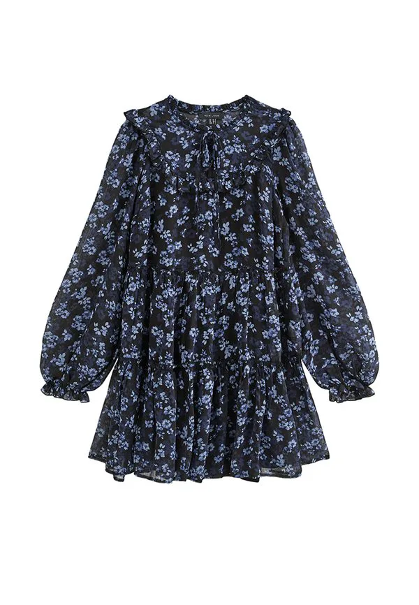Мини-Платье с цветочным принтом и оборками New Look, Black Pattern