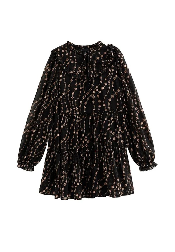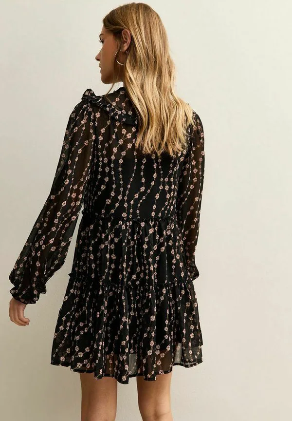 Мини-Платье с цветочным принтом и оборками New Look, Black Pattern