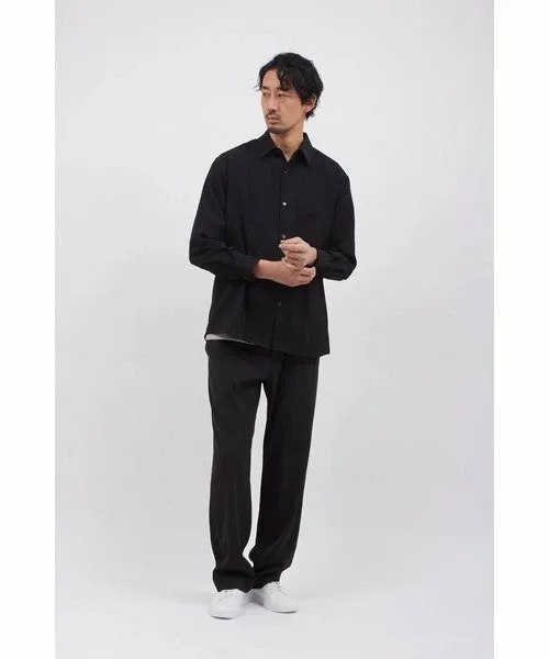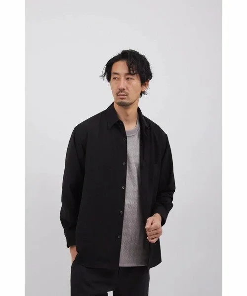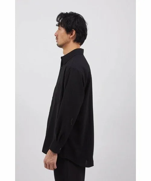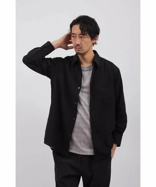 Рубашка свободного кроя из эластичного синтетического материала типа «шерстяная шерсть» с сухим на ощупь покрытием. Она сочетает в себе роскошную, расслабленную текстуру и легкий вид, придавая вашему образу естественность.