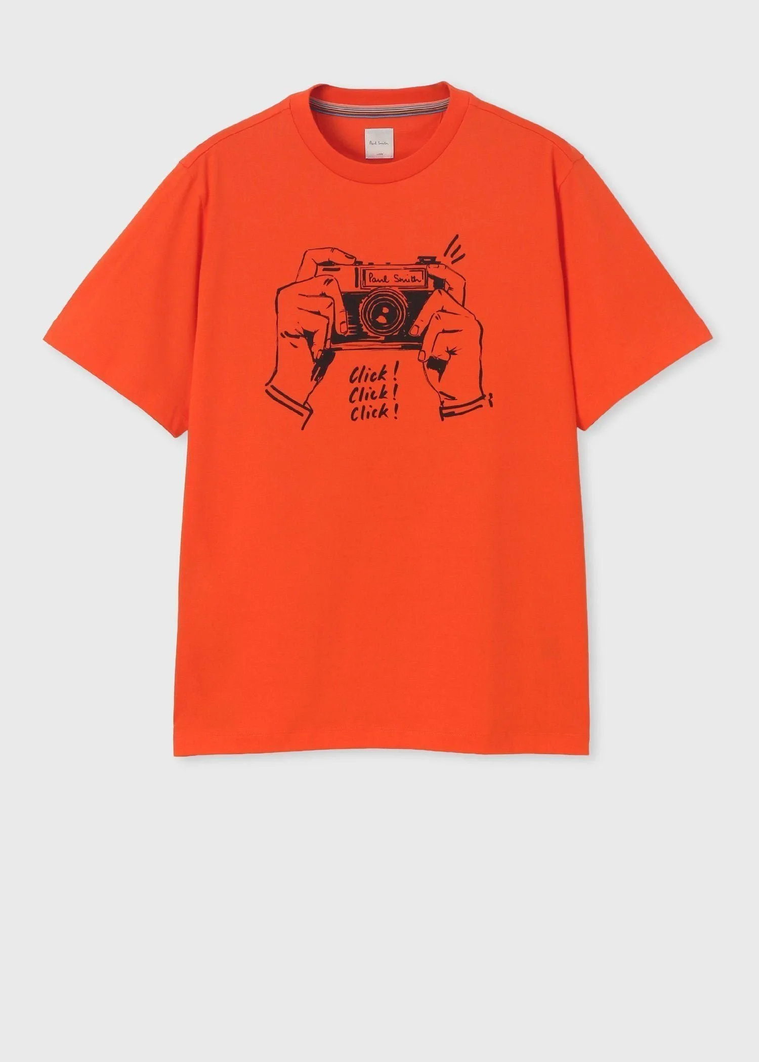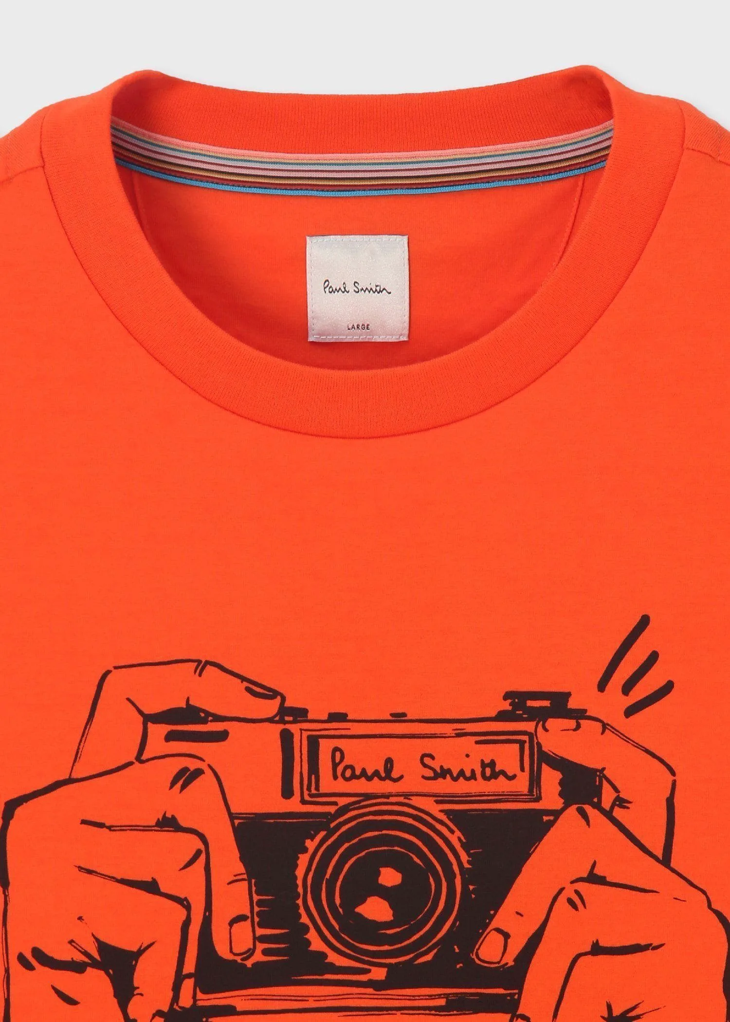 Футболка с короткими рукавами, излучающая чувство юмора и искусства. Ее игривый принт с рукой, держащей фотоаппарат, и надписью "Щелк! Щелк! Щелк!" бросается в глаза. Придавая образу ретро-стиль, графический элемент добавляет легкости и воздушности. Воротник украшен фирменной полосатой лентой, которая, наряду с логотипом Paul Smith на спине, добавляет изюминку. Хотя она и сама по себе выглядит эффектно, ее легко сочетать с другими стилями, что делает ее отличным акцентом для любого образа. Сделано в Китае