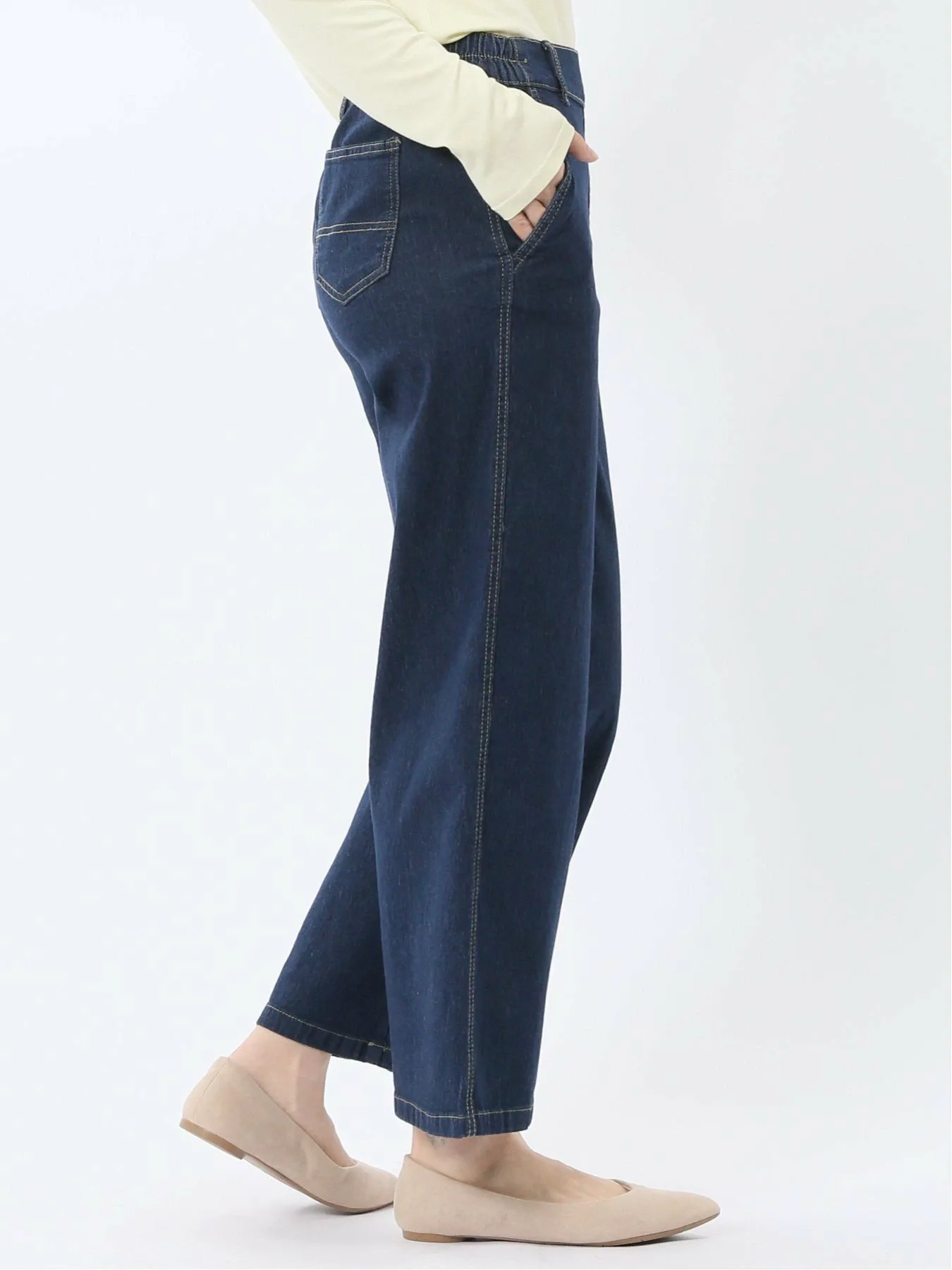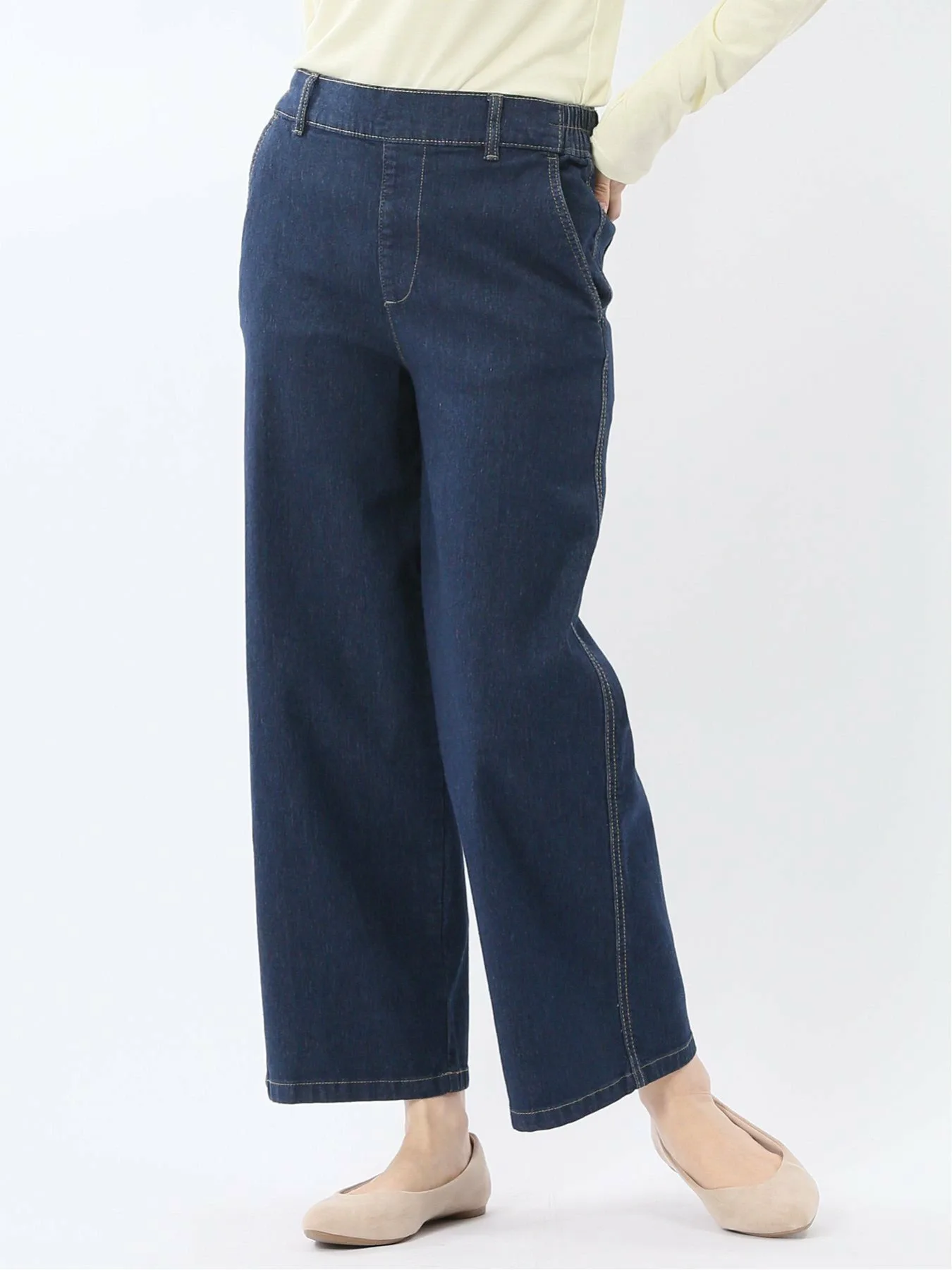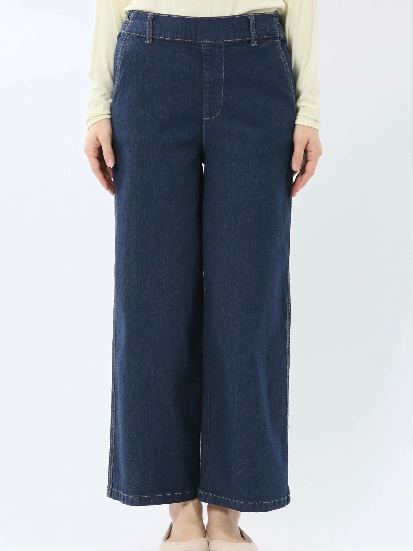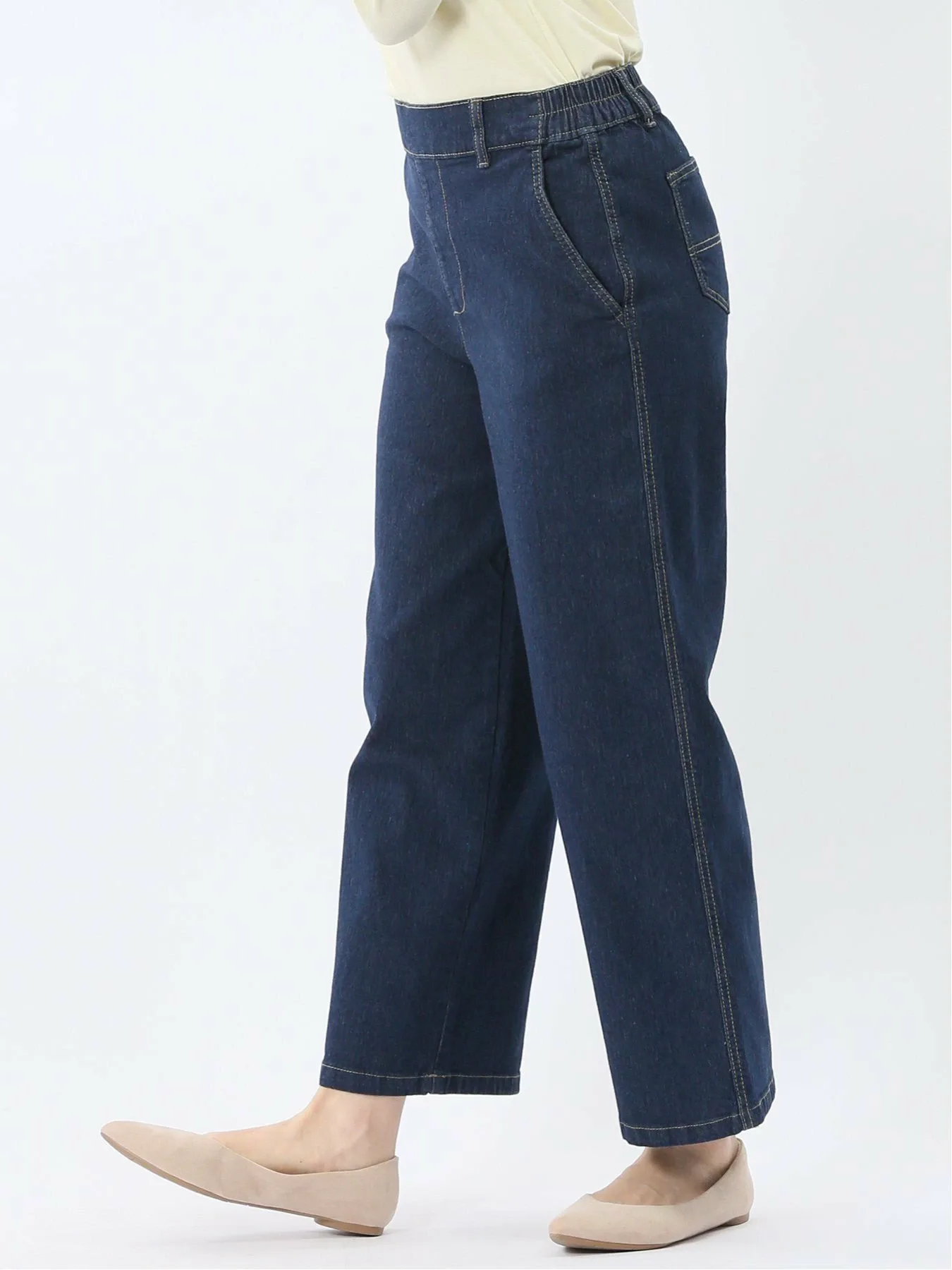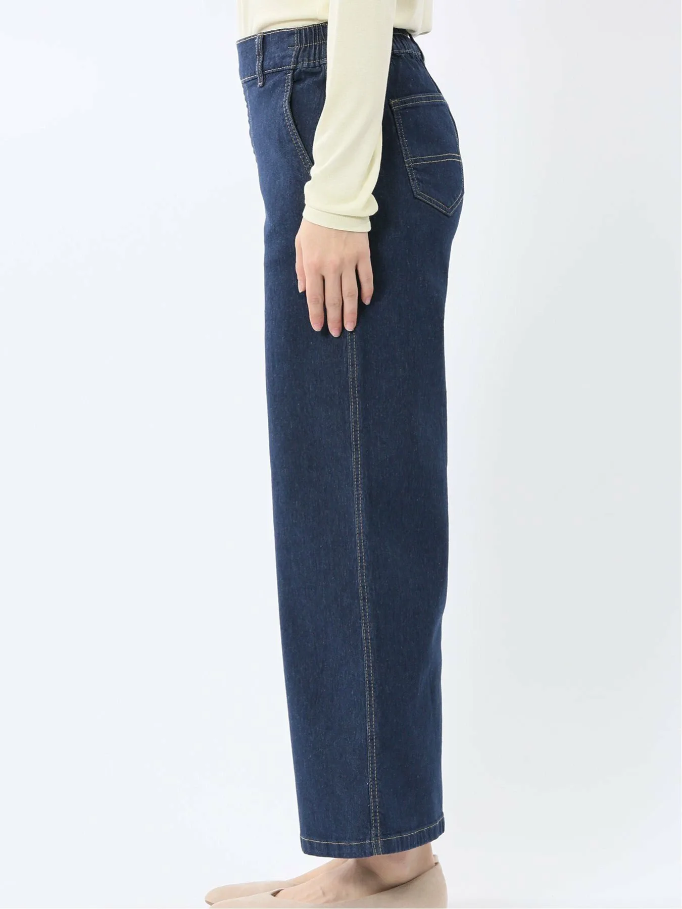 Эти простые прямые джинсы подходят для людей всех возрастов. Немного завышенная посадка мягко облегает бедра и промежность, сохраняя при этом положение талии, а свободный крой не подчеркивает бедра. Отсутствие молний или пуговиц и сборок сзади обеспечивают удобную посадку. Передняя строчка придает аккуратный вид, обеспечивая естественный силуэт даже в заправленном виде. Брюки не имеют передней молнии или пуговиц, а также передних и задних карманов. Силуэт: Прямой силуэт создает красивую линию ног. Немного завышенная посадка создает более высокую линию талии, визуально удлиняя ноги. Нижний край предварительно обработан. (Длина внутреннего шва: 67 см, машинная строчка) Сочетание: Эти брюки дополняют широкий спектр нарядов, от элегантных до повседневных. Сочетайте их с лоферами и кроссовками, а также с изящными сандалиями и туфлями на каблуках для создания непринужденного образа. Посадка: Стандартная Сезон: Весна/Лето Доступные цвета: Синий и темно-синий Пожалуйста, ознакомьтесь с этикеткой по уходу и инструкциями по стирке перед ношением или использованием. Избегайте хранения в местах, подверженных воздействию света, или в жарких, влажных местах. Обратите внимание, что со временем, независимо от износа, происходит износ. В зависимости от способа раскроя и пошива ткани, рисунок может выглядеть не совсем так, как показано на фотографии. *Обратите внимание, что в зависимости от устройства просмотра и окружающей среды могут быть расхождения в текстуре и цвете.