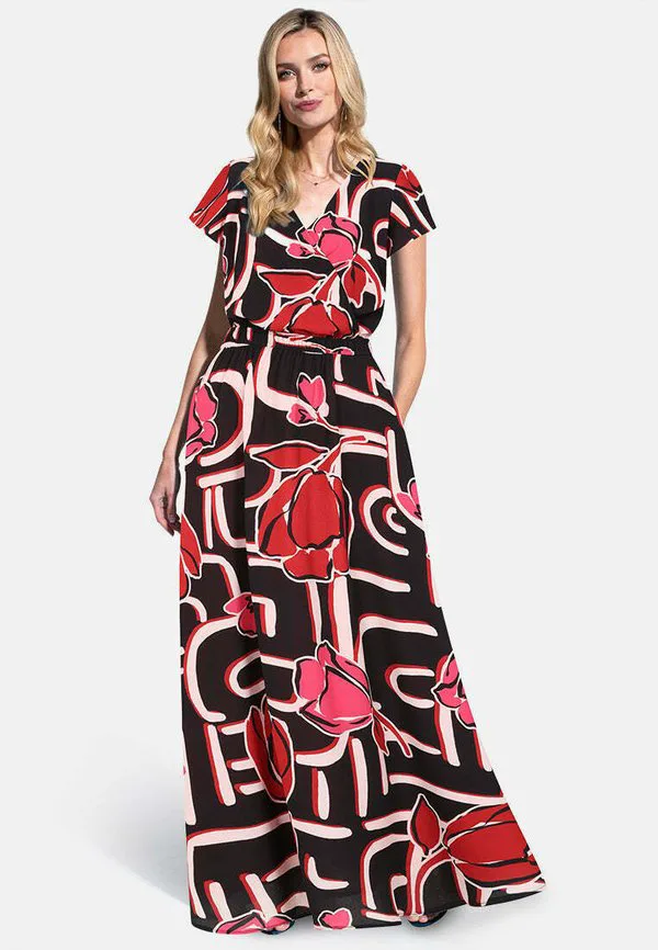 Платье макси Hotsquash, Black/Red Geo Floral