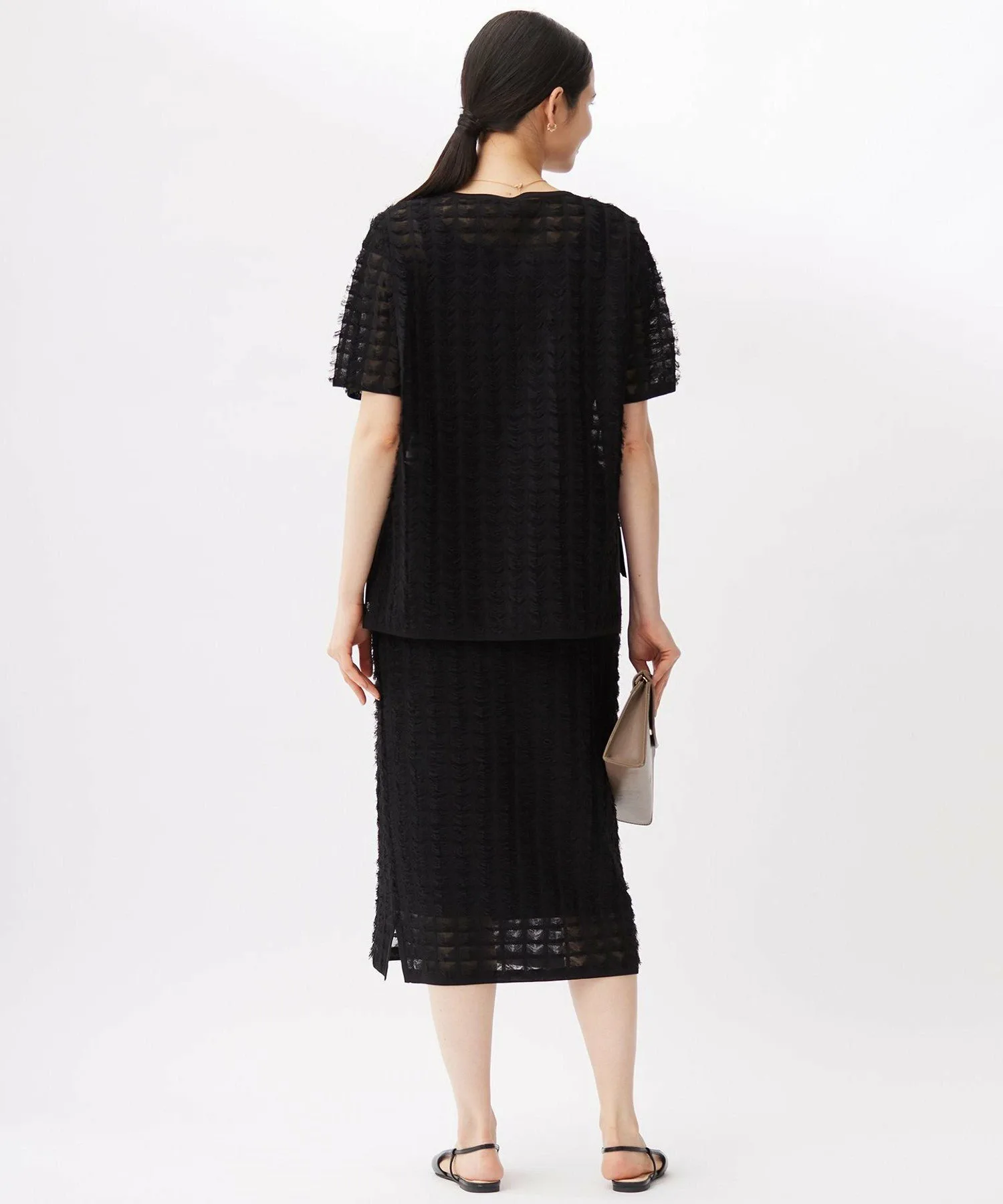 Трикотажная ткань жаккардового кроя, которая станет изюминкой вашего образа. Дизайн: Великолепная трикотажная ткань жаккардового кроя. Простой дизайн в стиле футболки позволяет легко включить ее в повседневный гардероб. Умеренная прозрачность создает ощущение прохлады и воздушности, делая ее стильной вещью, которая добавит элегантности любому образу. Мы также рекомендуем сочетать ее с юбкой (SKWRGA0054), изготовленной из того же материала. Материал: Прозрачный, плотный материал с эффектом бахромы, созданным с помощью жаккардовой хлопково-полиэстерной нити. Высокоэстетичный дизайн производит впечатление, создавая прохладный, летний образ. Тот же материал: Юбка (SKWRGA0054)