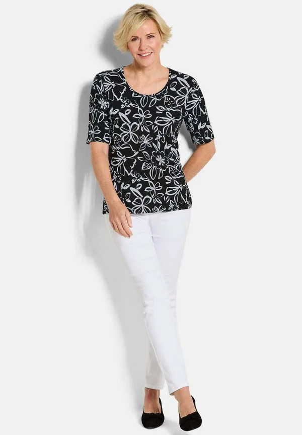 Футболка с принтом mit blumenmuster Goldner, Black/White Patterned