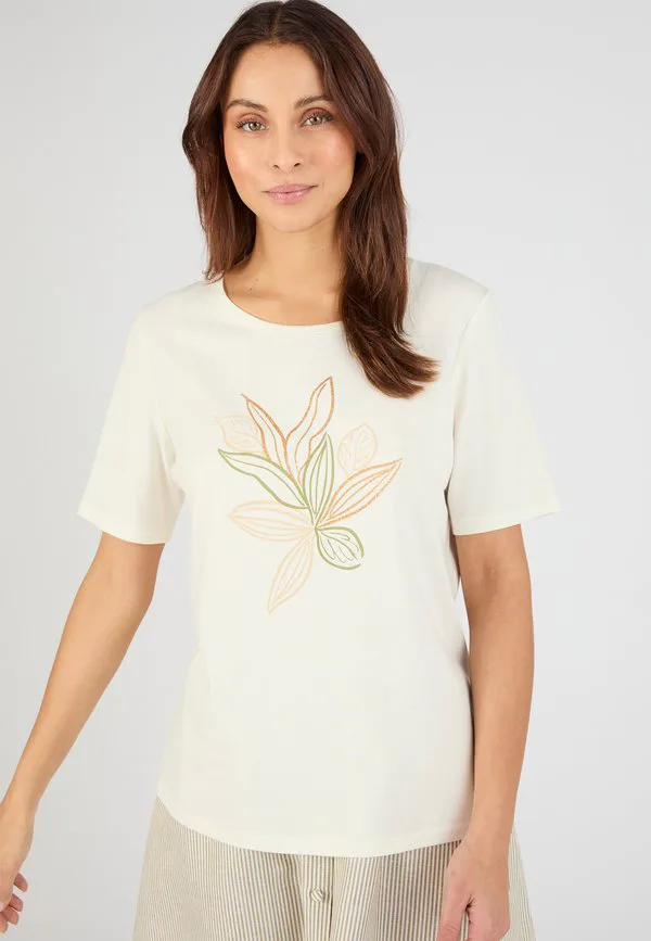 Футболка с принтом в виде листьев Damart, Blanc Cassé