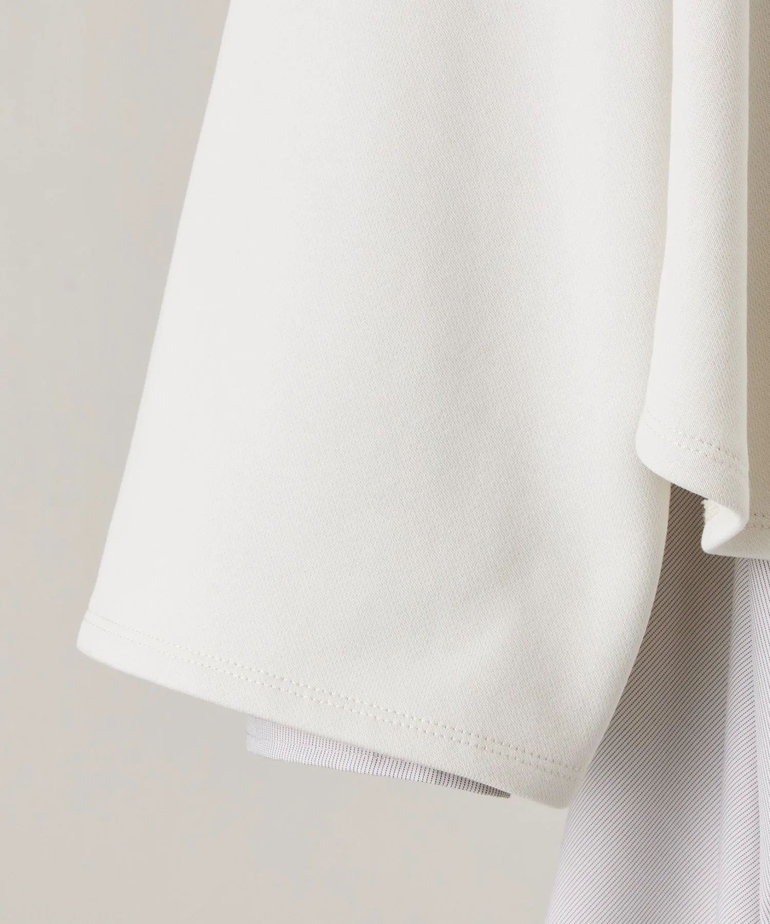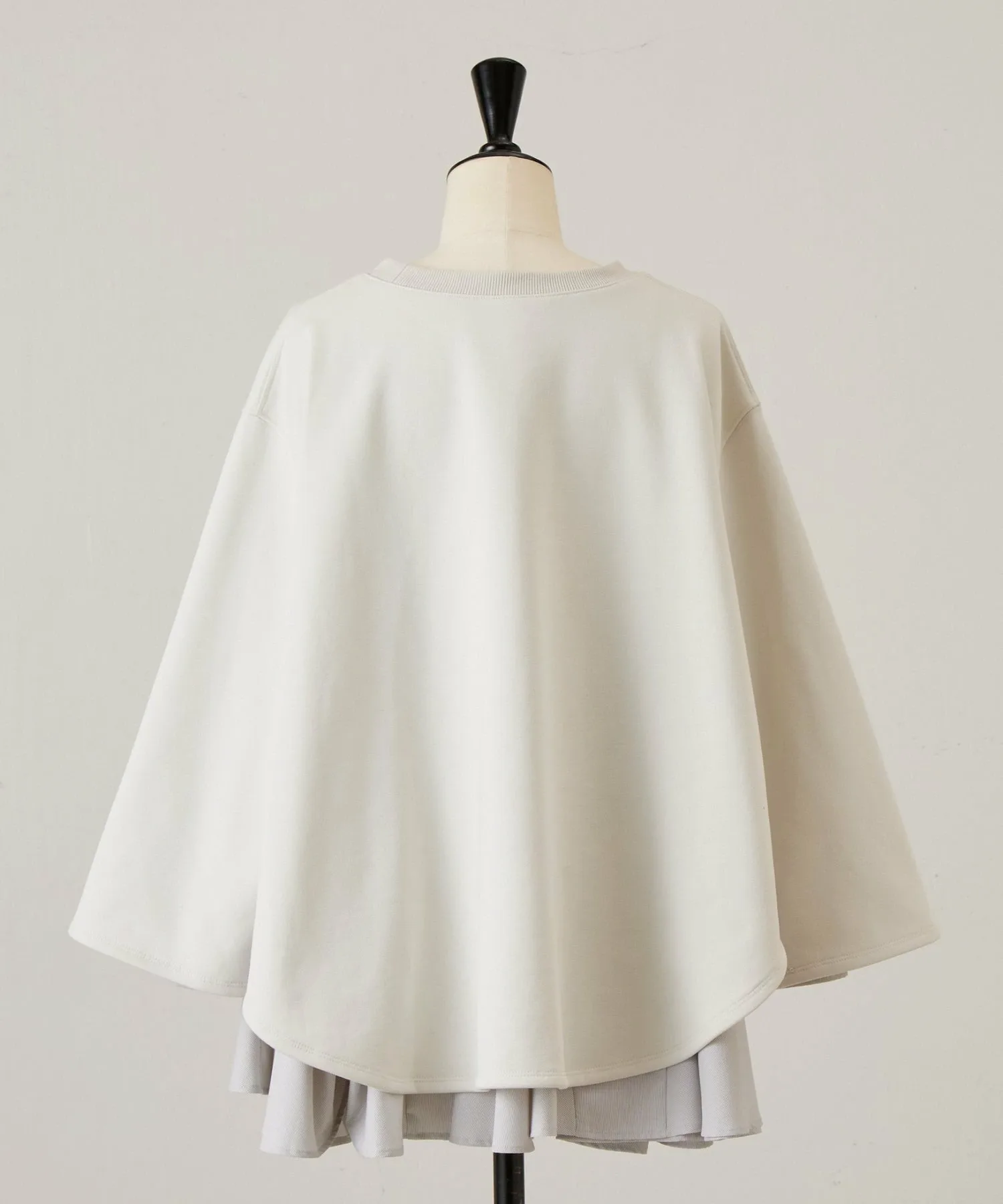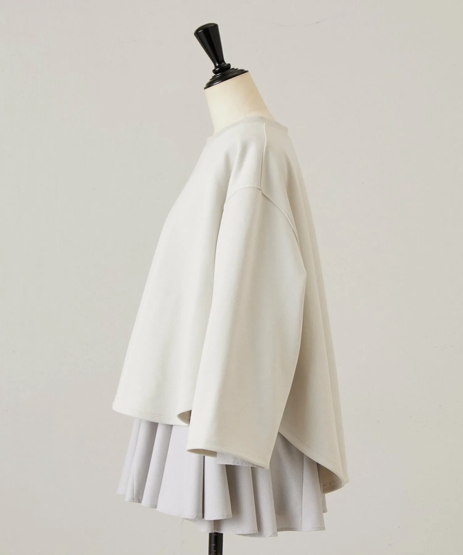 Блузка с длинными рукавами, выглядывающая из-под подола, выполнена из разных материалов для каждого цвета,
