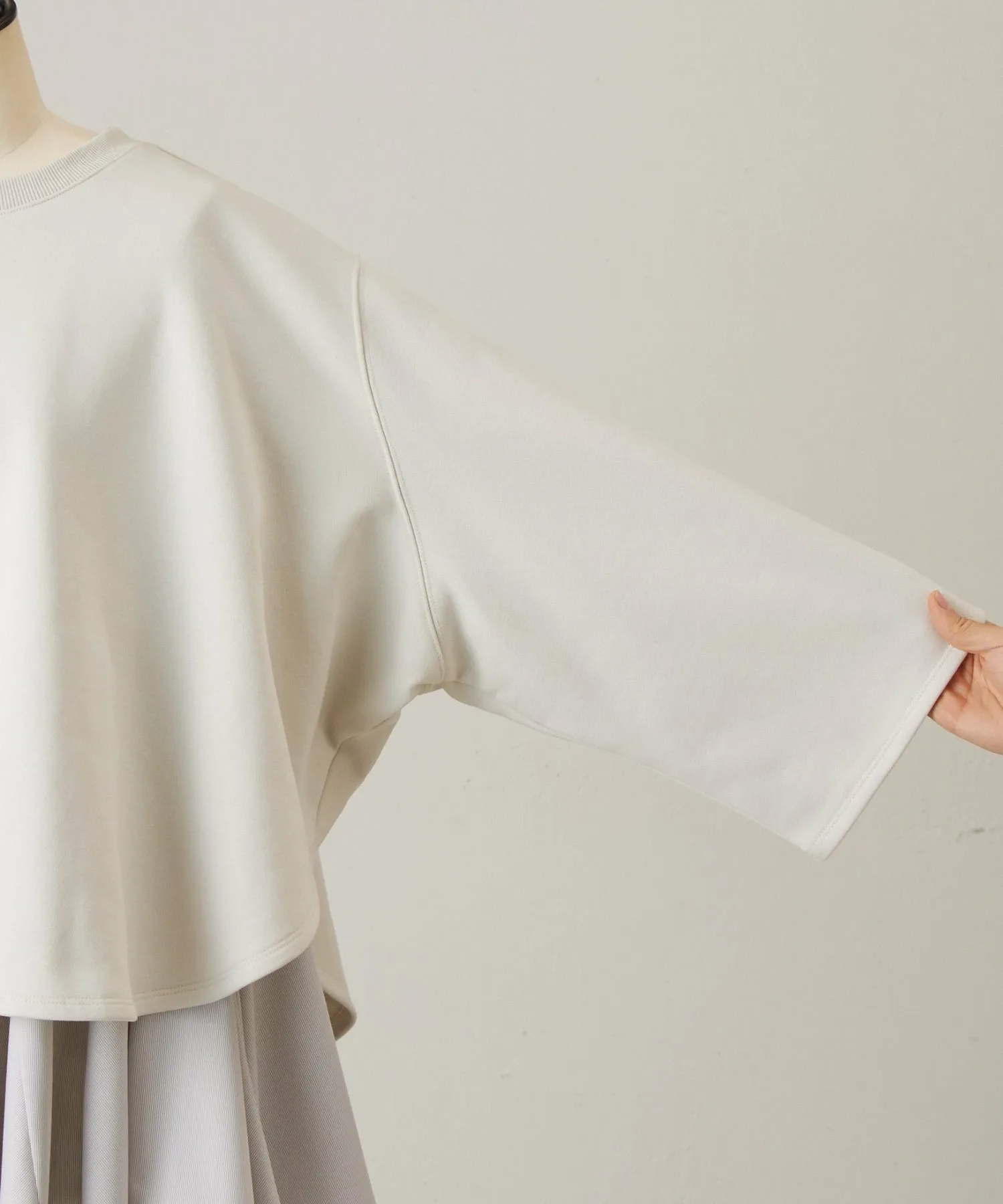 Свитшот изготовлен из мягкого хлопкового материала и имеет рукава «летучая мышь», что делает его достаточно повседневным для ношения.