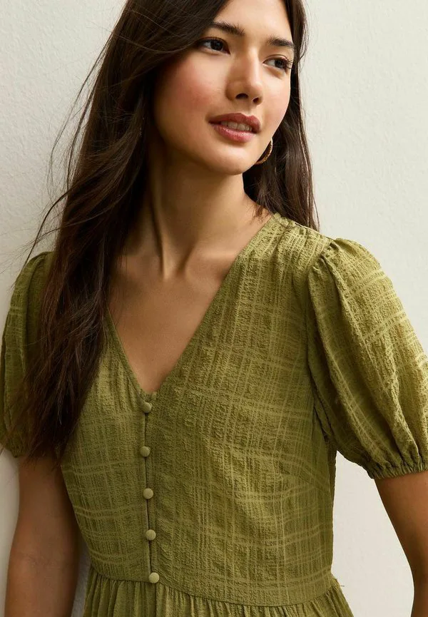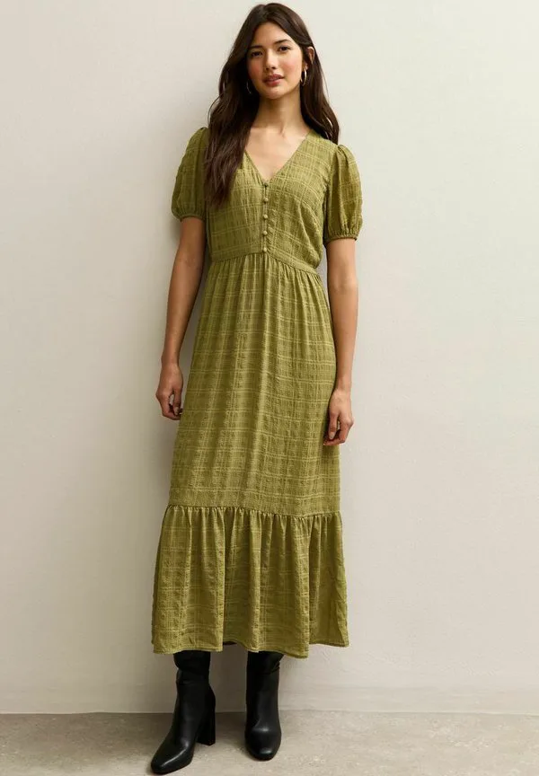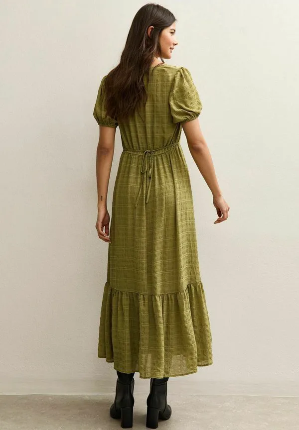 Платье-Рубашка миди в клетку с пуговицами New Look, Olive