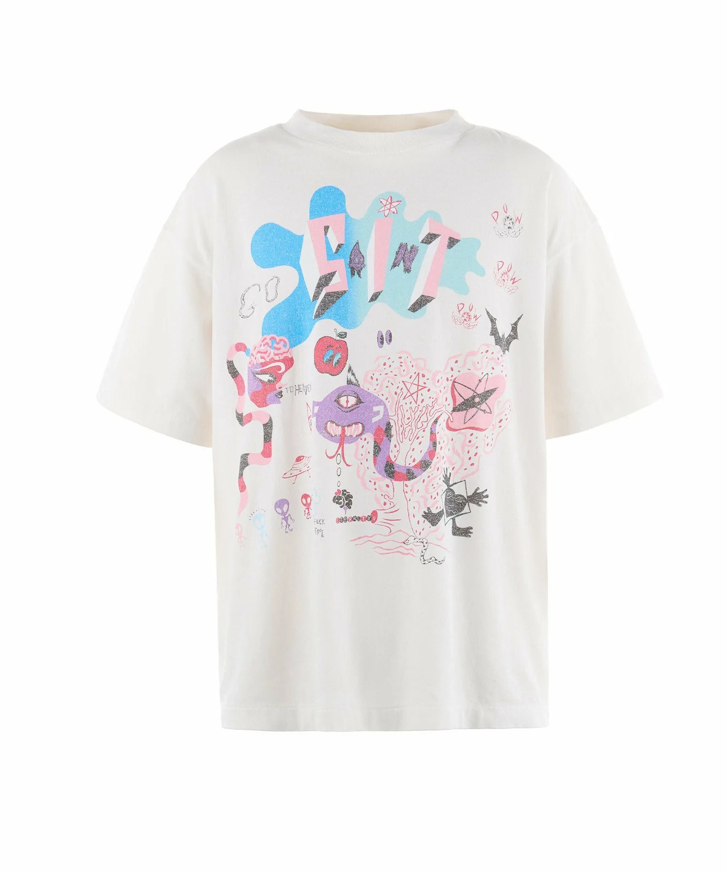 Эта футболка с короткими рукавами украшена графическим принтом спереди и сзади, воплощающим фирменный стиль Saint Michael. Обработка, стремящаяся к реалистичному винтажному виду, создает изысканный эффект. Свободный силуэт хорошо сочетается с различными вариантами низа, от шорт до свободных джинсов и брюк-карго.