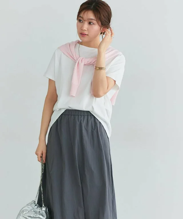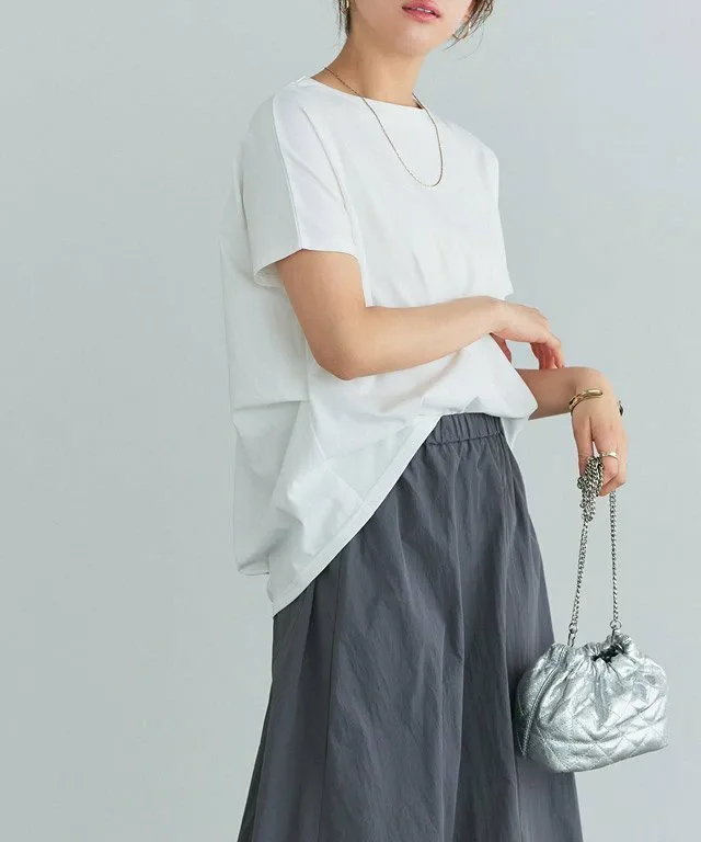 Складчатый дизайн спереди и сзади, а также аккуратный вырез горловины придают ему элегантный вид, не делая его слишком повседневным. Умеренно свободный силуэт естественным образом скрывает любые недостатки в области ягодиц. Заправив передний край в брюки, вы создадите изысканный образ.
