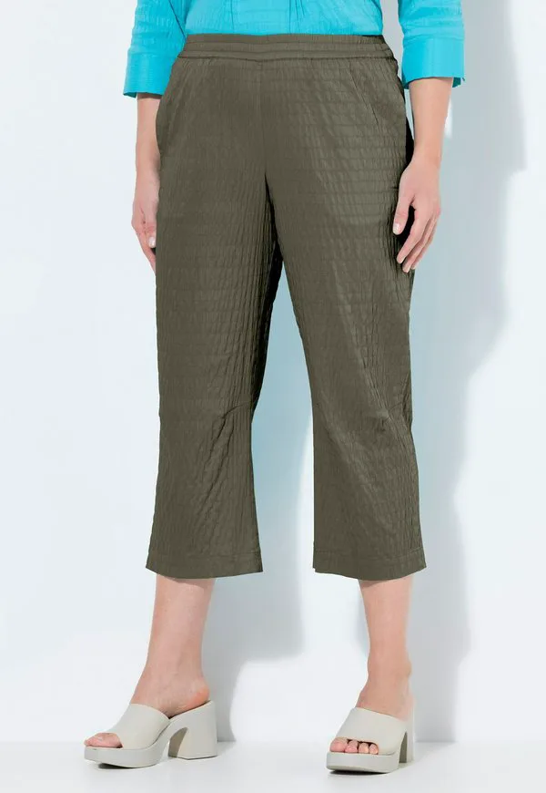 Текстурированные эластичные укороченные брюки Ulla Popken, Olive Grey