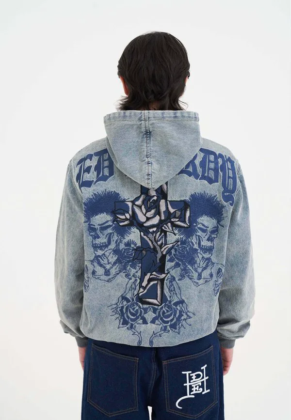 Джинсовая куртка с перекрестным узором и застежкой-молнией в виде пламени Ed Hardy, Bleach