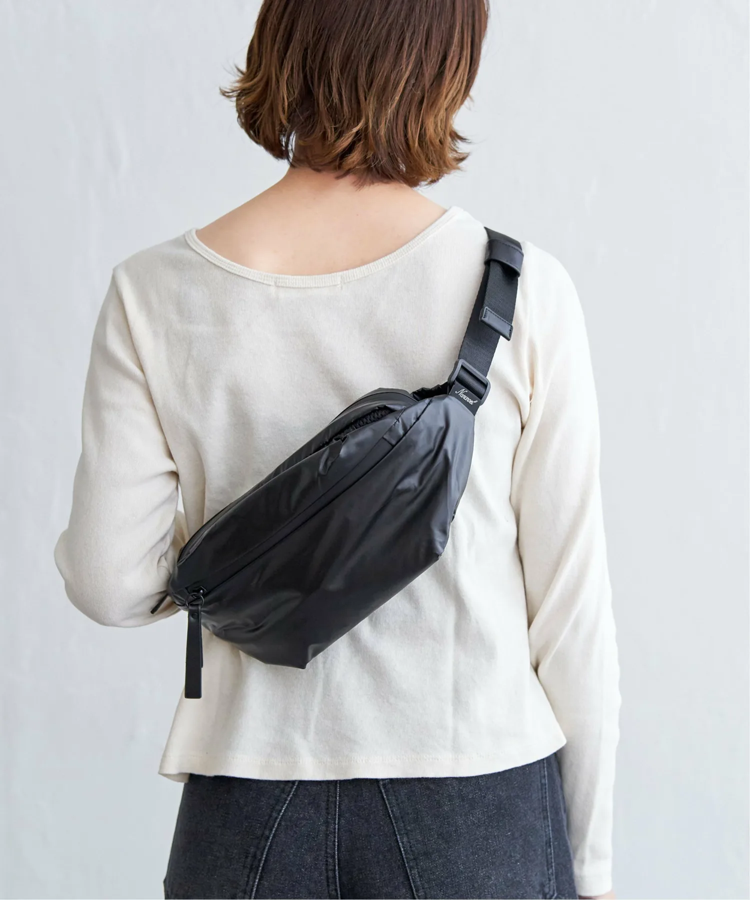 Сумка для тела из блестящей, глянцевой ткани.