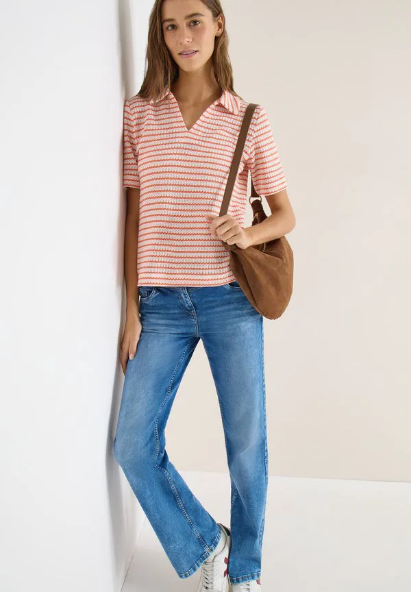 Gestreiftes ajour polo shirt Cecil, Orange