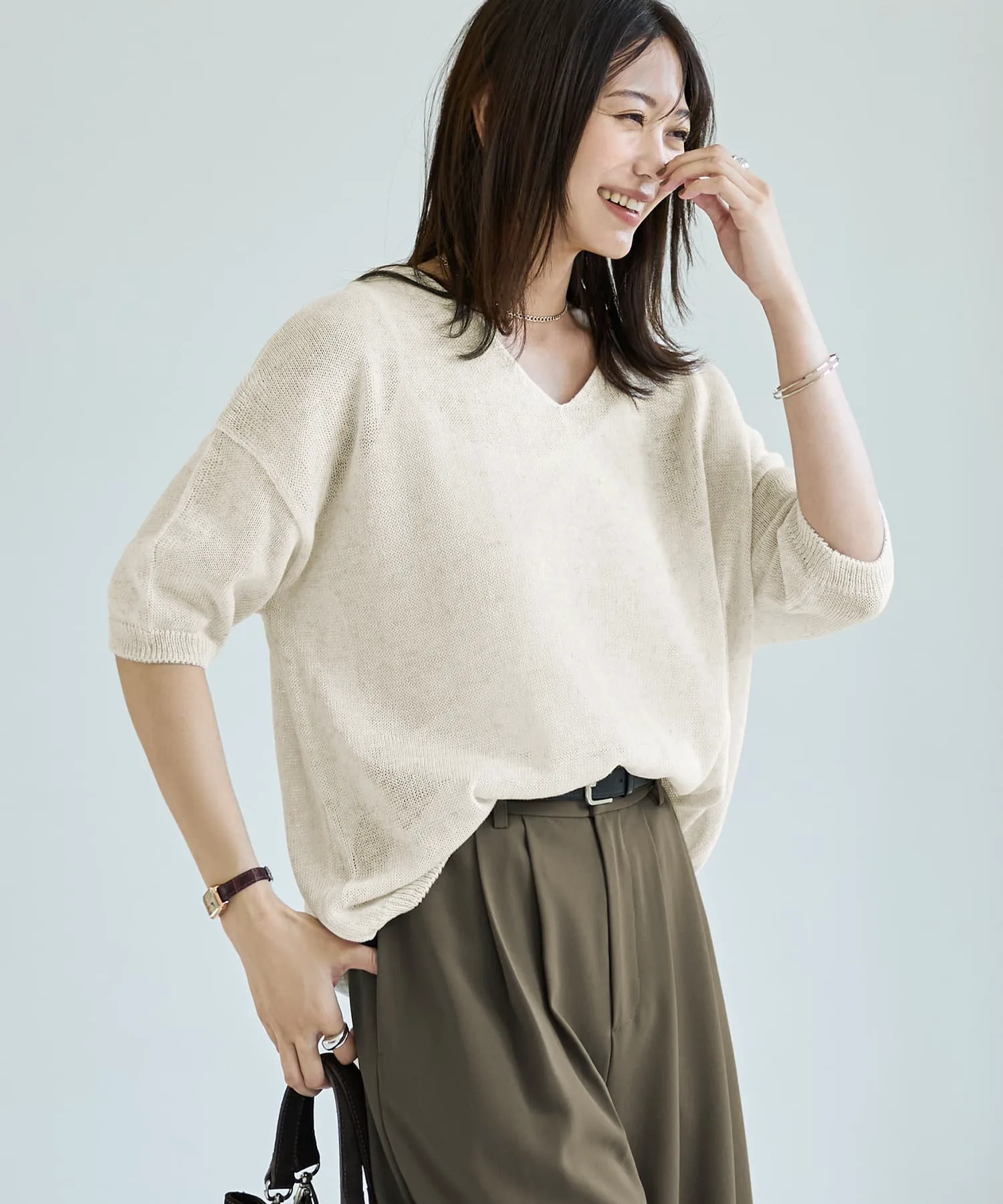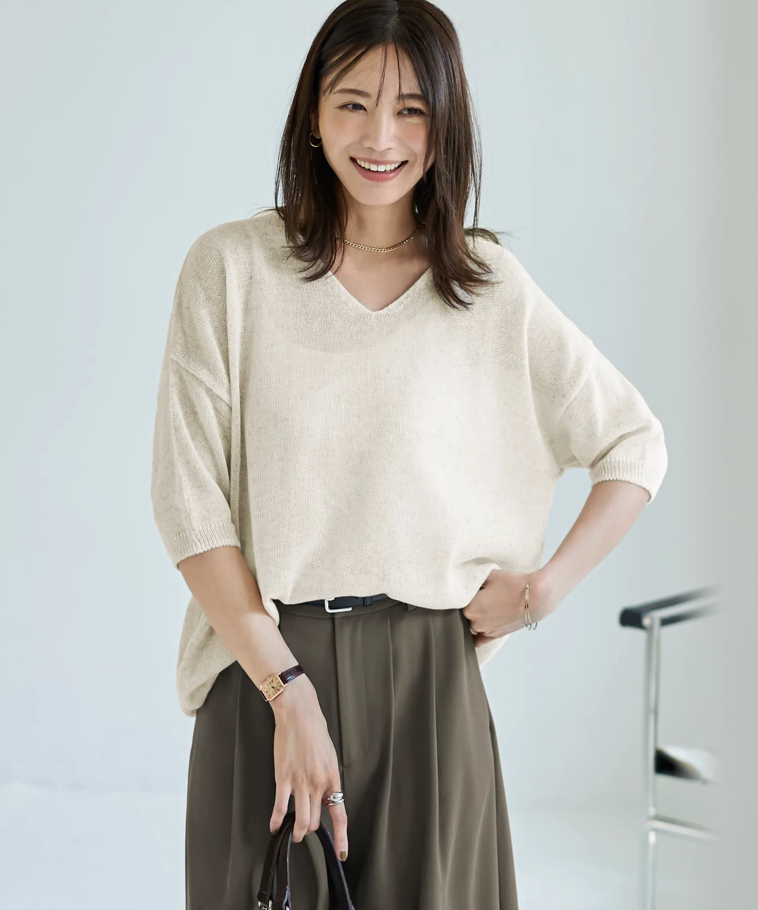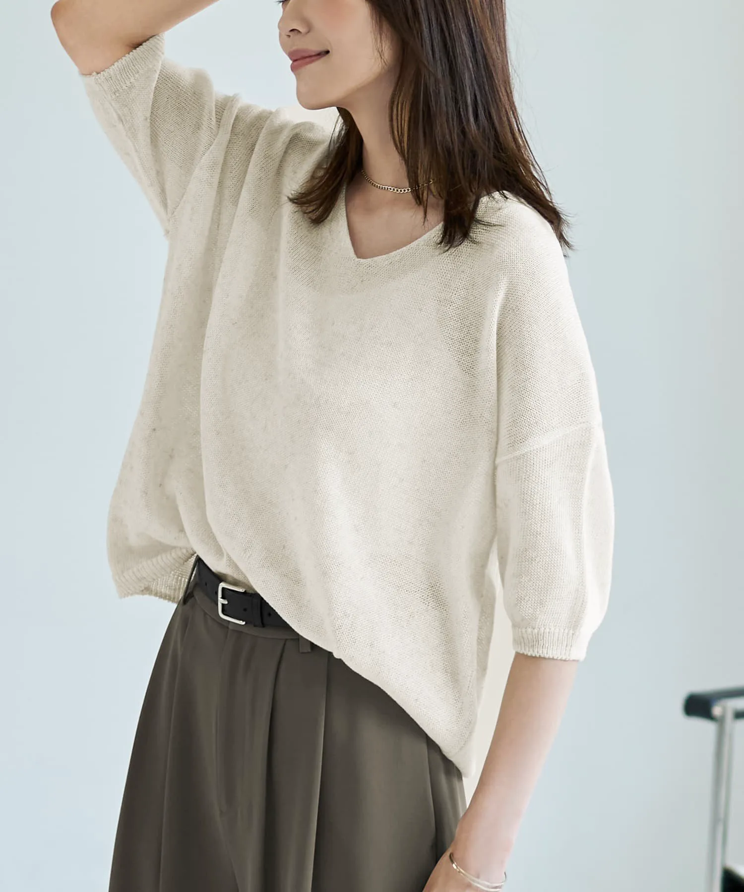 Изысканный трикотаж с V-образным вырезом, который легко носить.