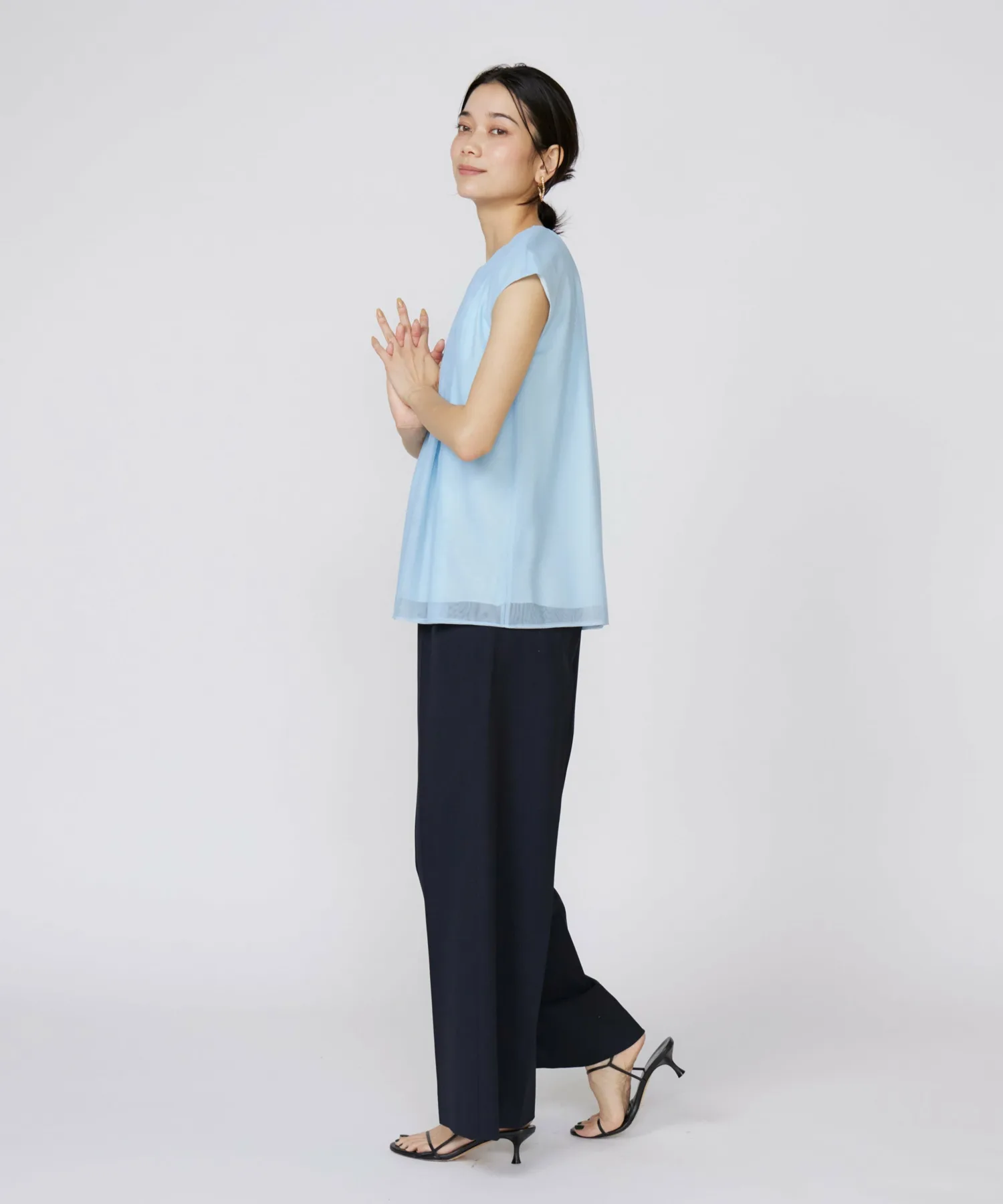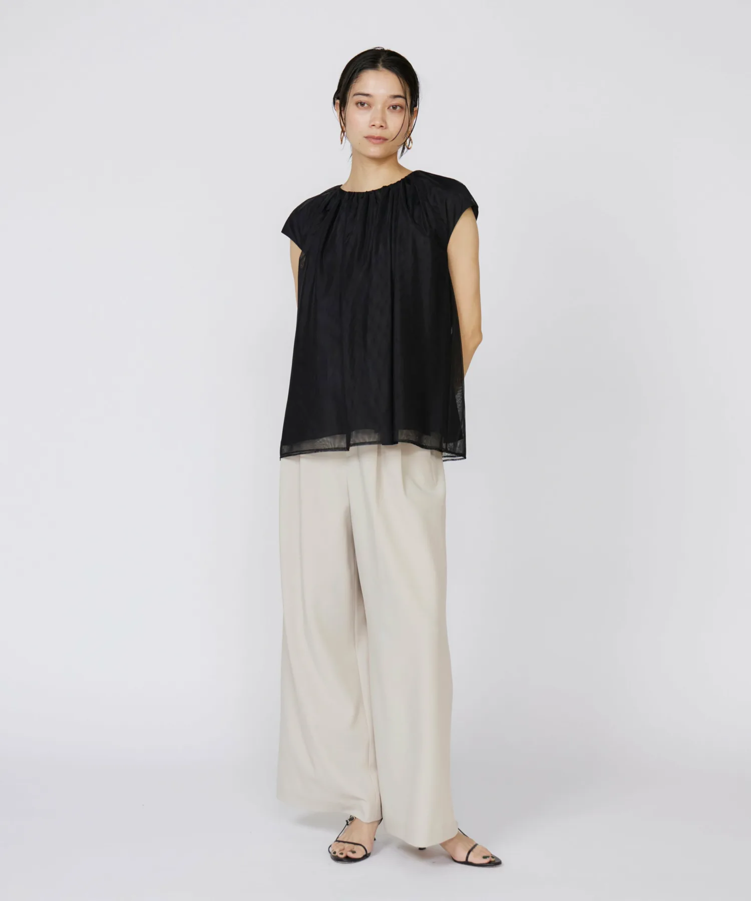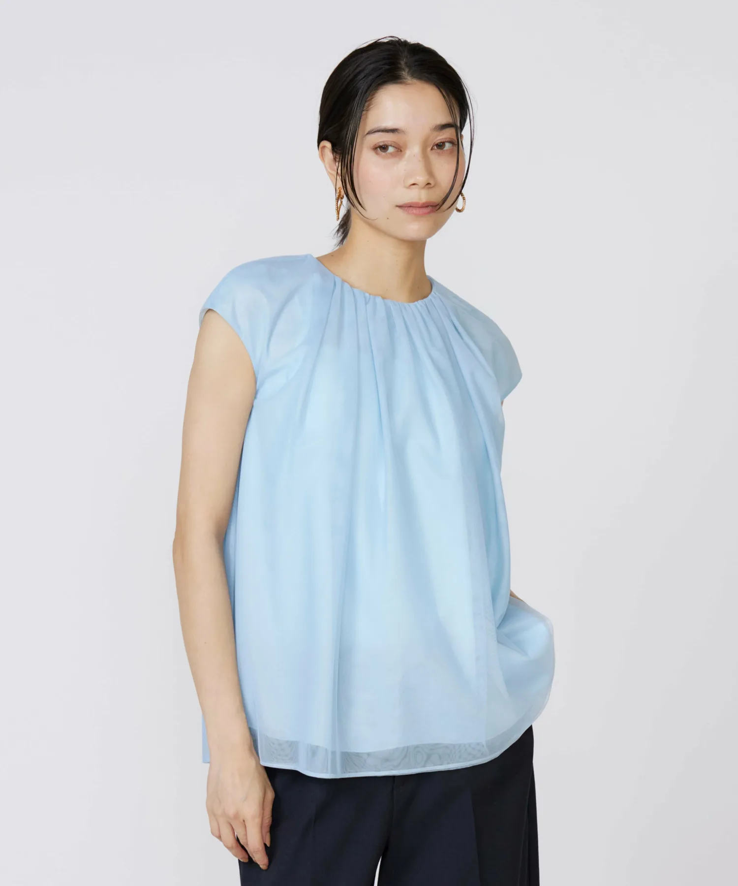 Эта блузка выделяется двумя слоями тюля на лифе. Сборки на вырезе создают непринужденную атмосферу, а хаотичное наложение тканей придает ей солидный вид. Благодаря особенностям материала, она создана таким образом, чтобы сразу привлечь внимание, не будучи при этом слишком простой.