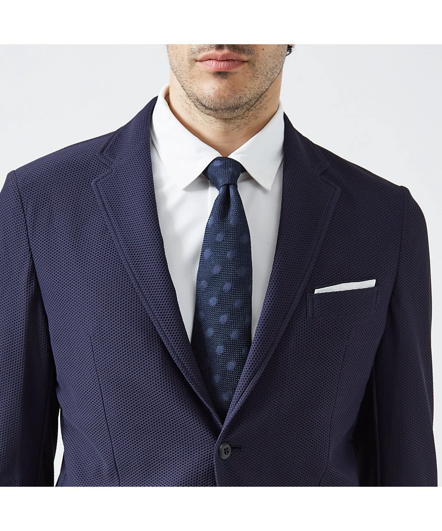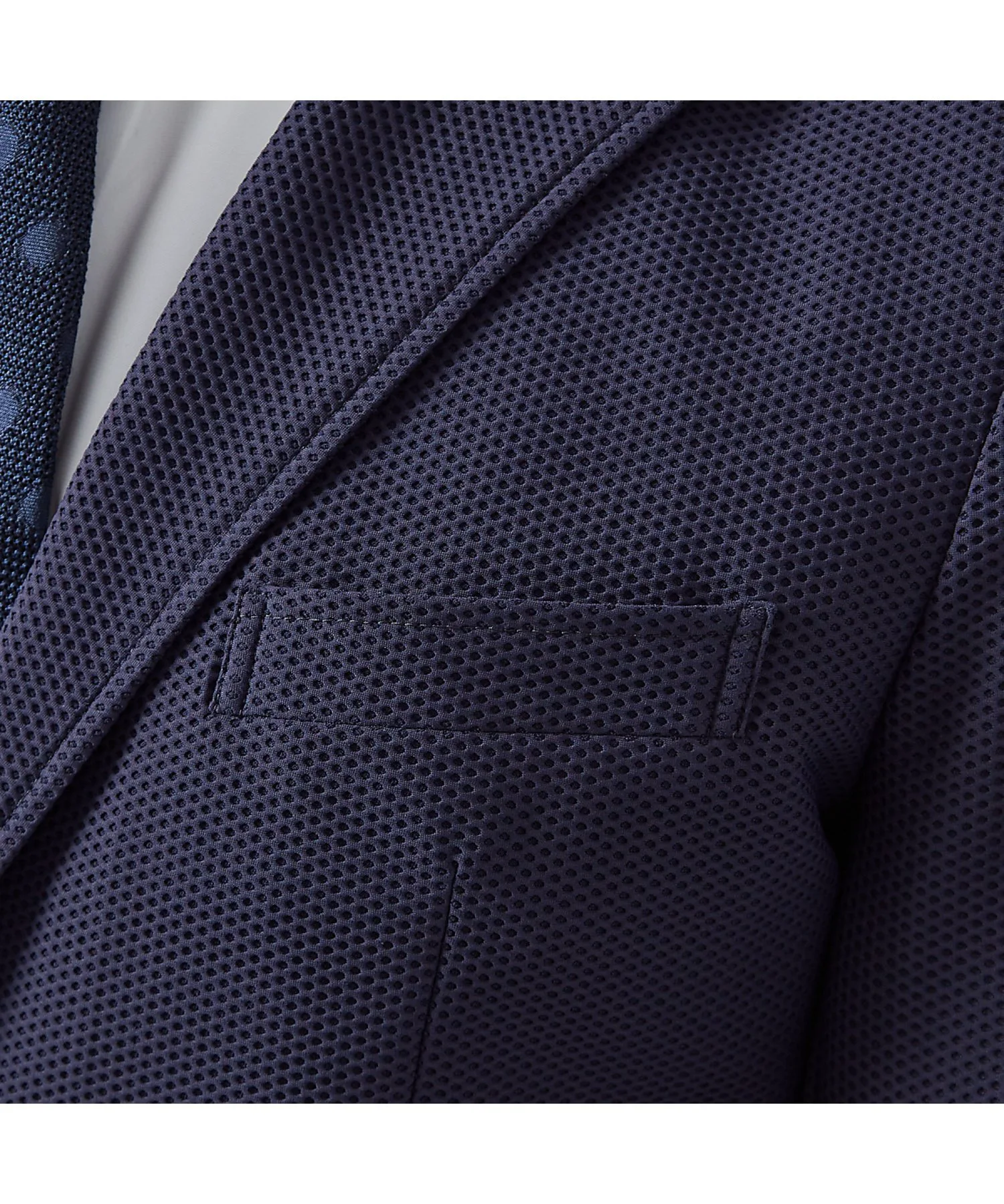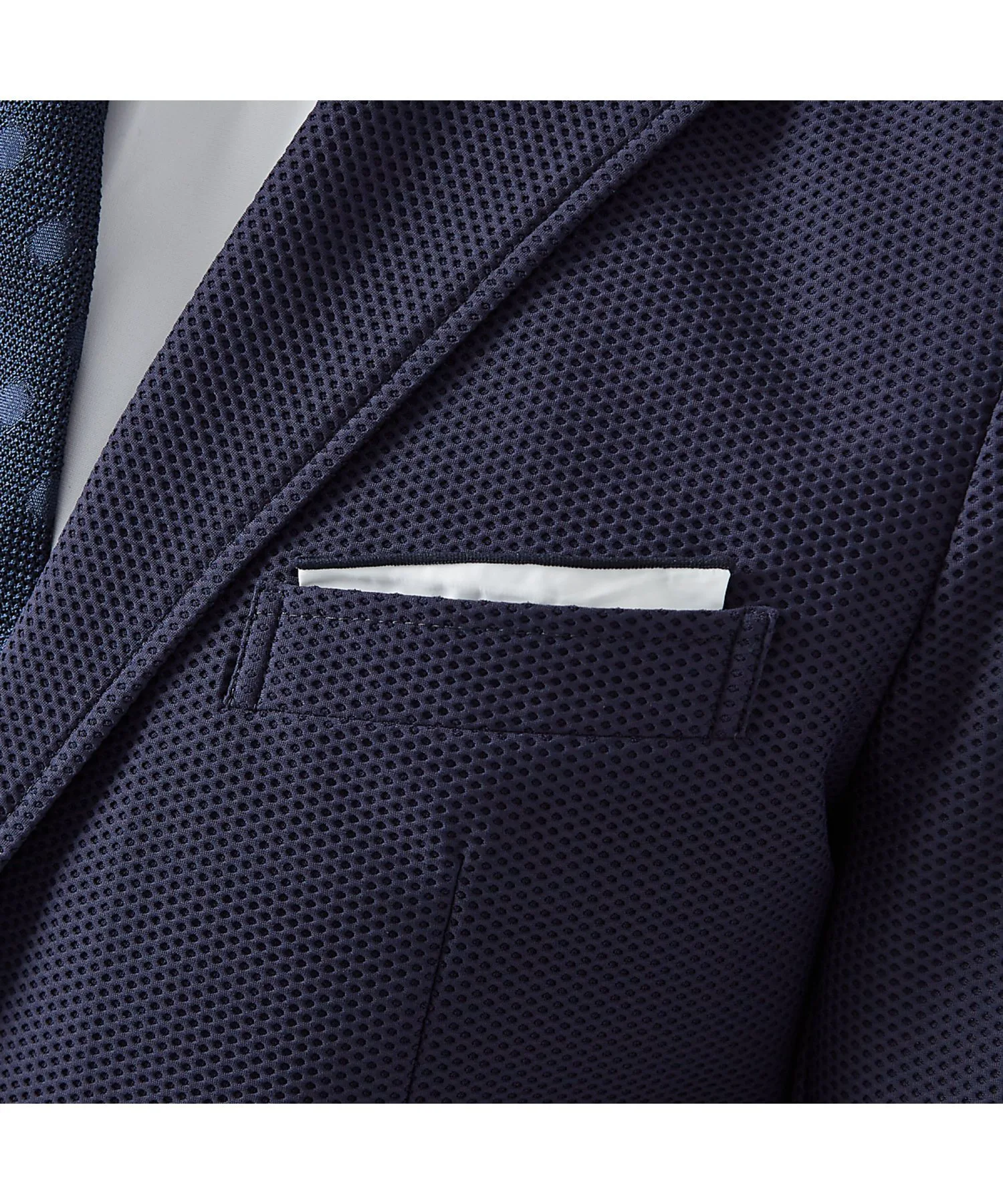 Эта летняя куртка выполнена из дышащей и эластичной сетчатой ткани с сотовой структурой. Отличная вентиляция обеспечивает сухость и комфорт с начала лета до середины лета. Она имеет привлекательный силуэт с умеренно выраженной талией и карманный платок, который легко можно заправить или вынуть в зависимости от случая.