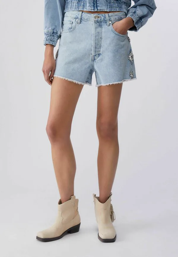 Джинсовые шорты с вышитыми драгоценными камнями Liu Jo, Blue
