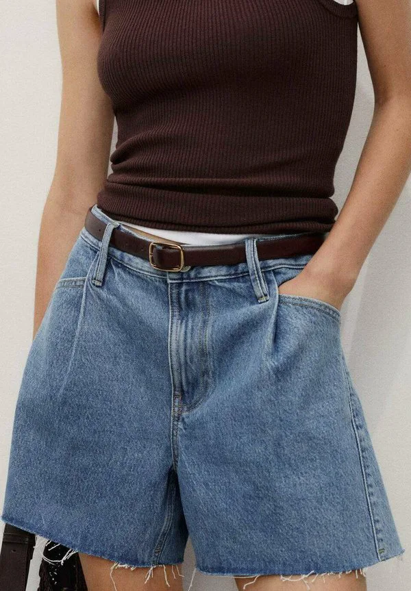 Джинсовые шорты с рваным краем и складками Mango, Blue 5 170₽