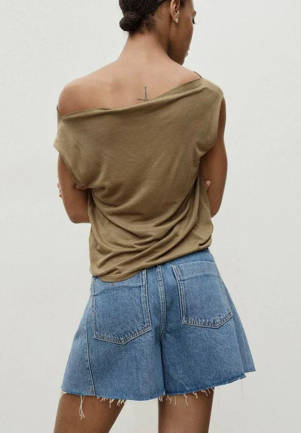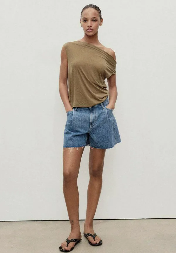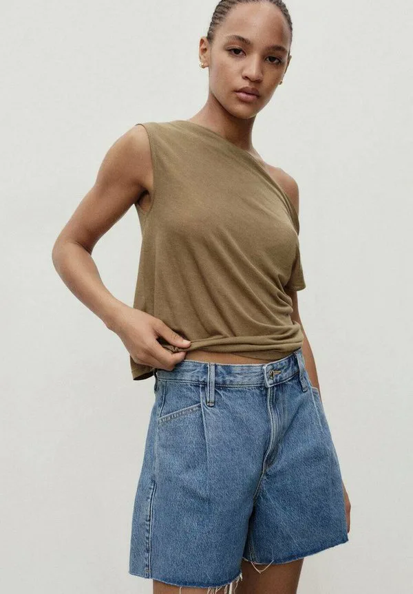 Джинсовые шорты с рваным краем и складками Mango, Blue