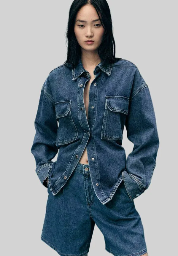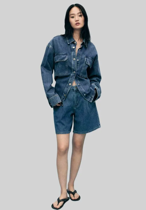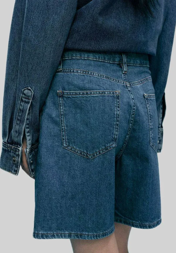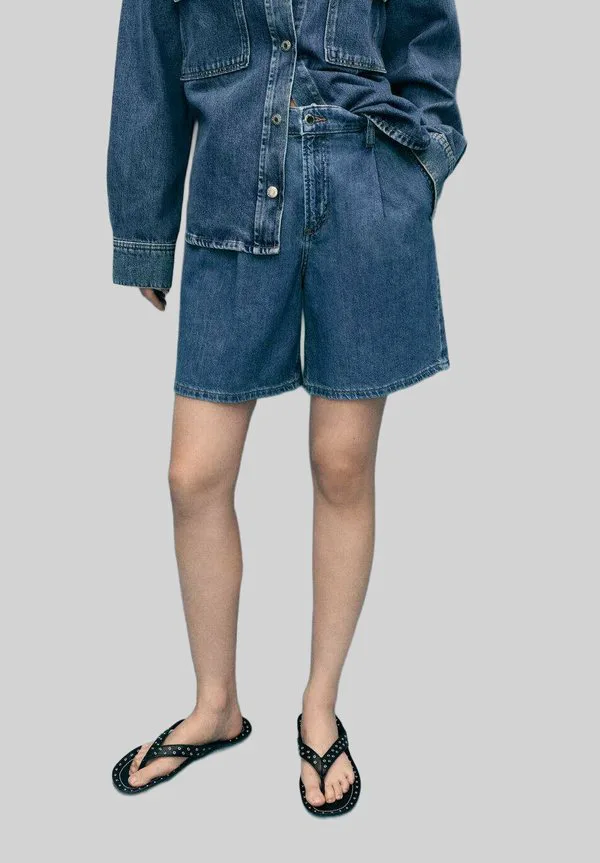 Бермуды со средней посадкой и плиссировкой, джинсовые шорты Mango, Blue