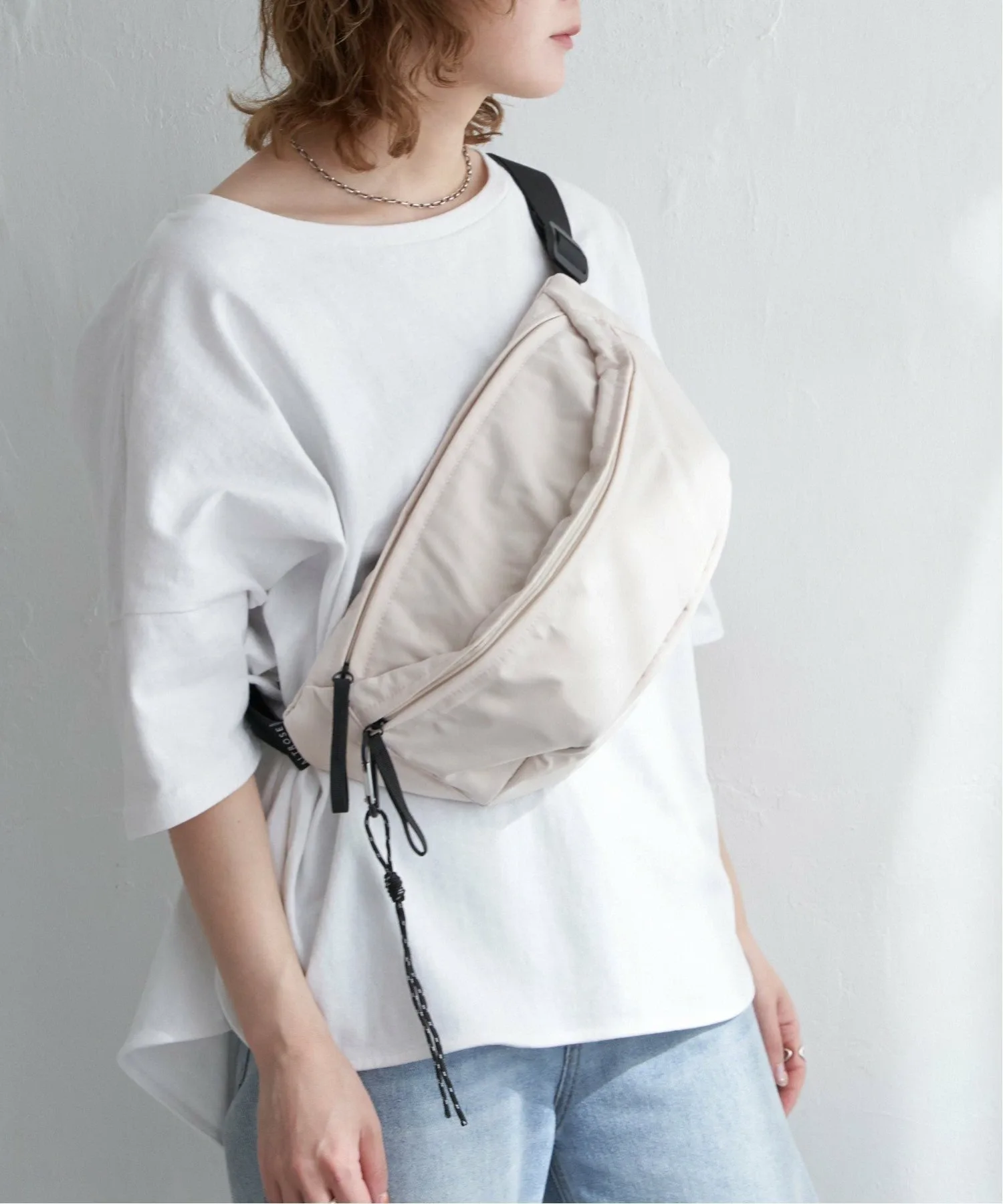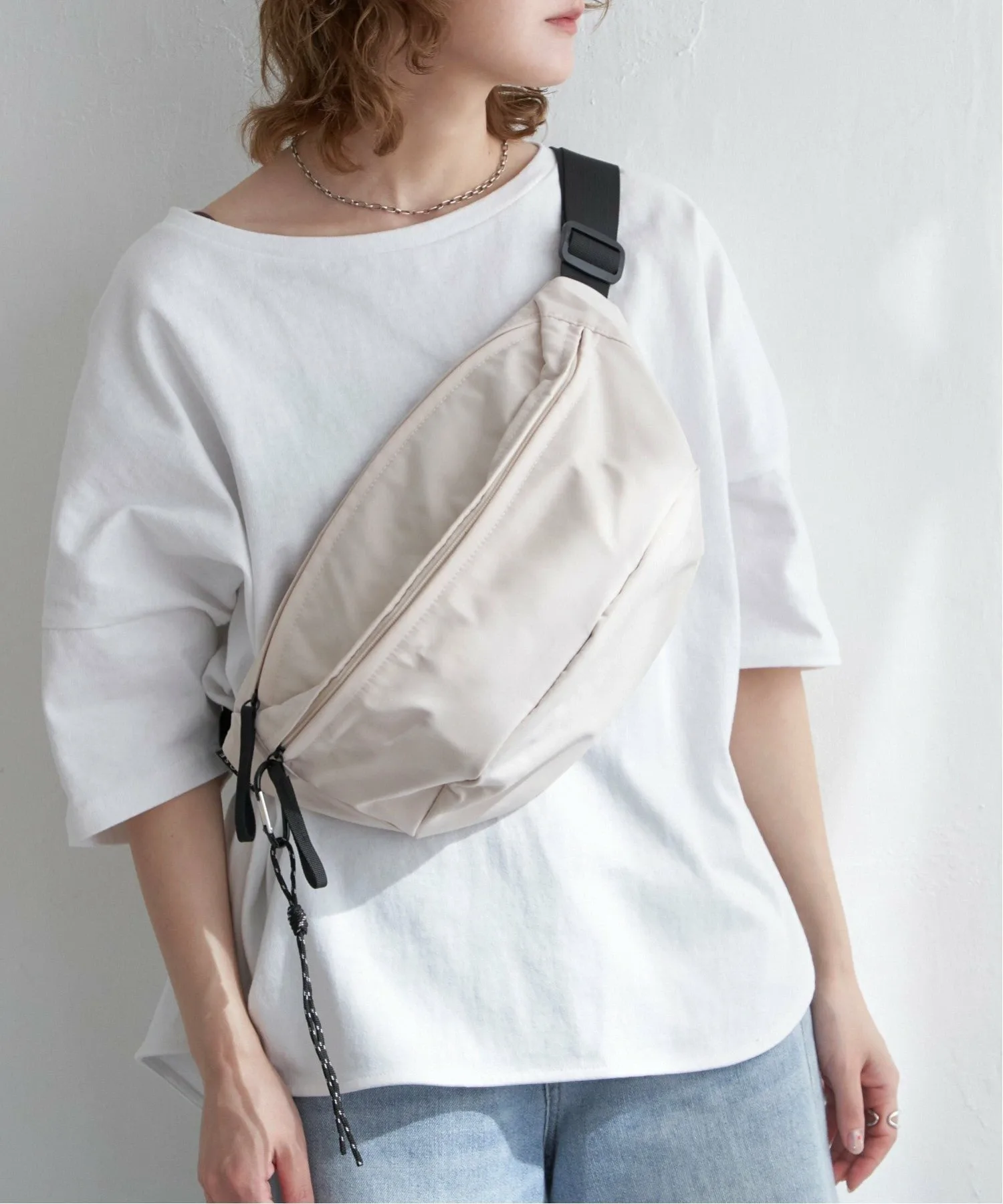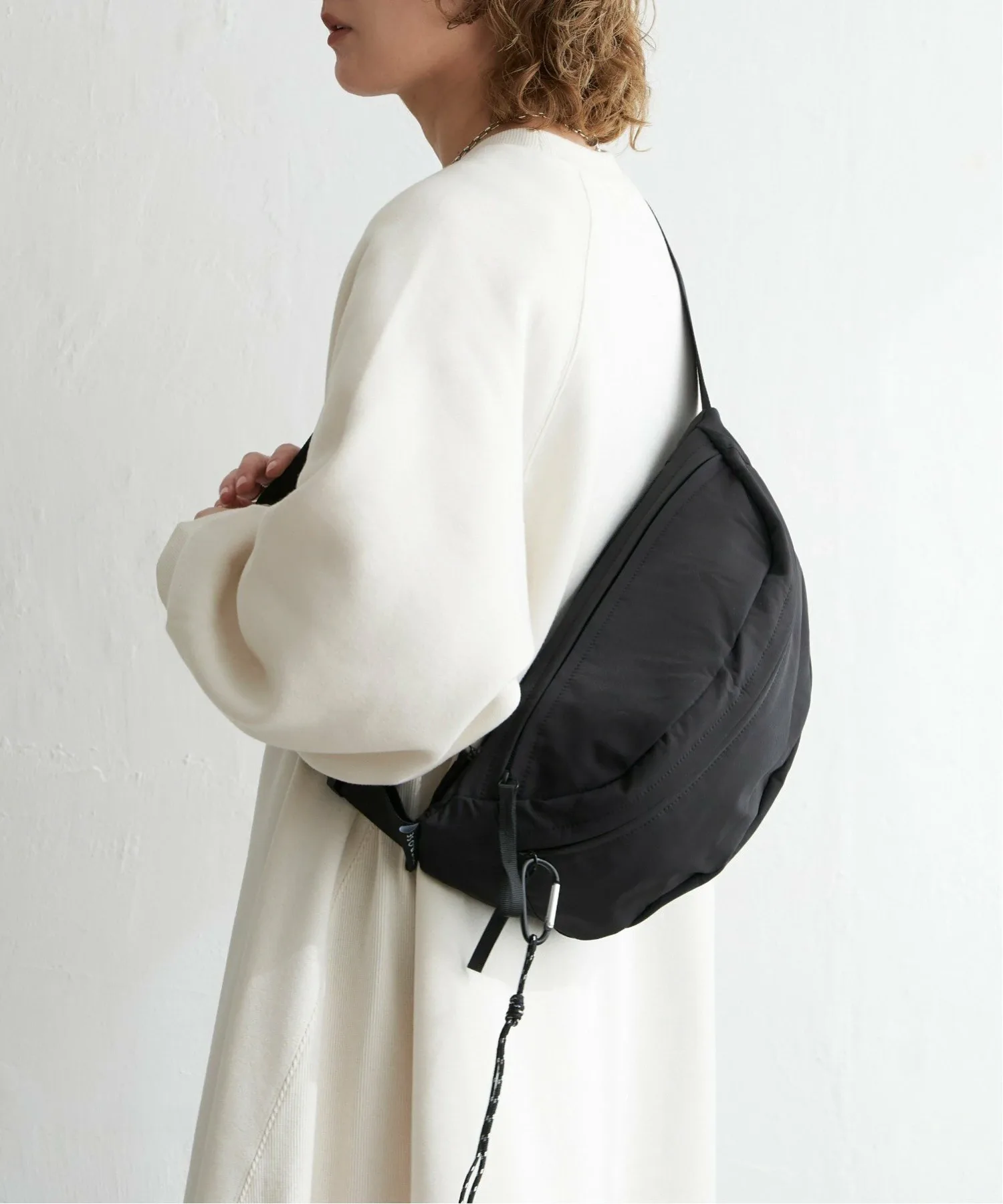 Эта большая сумка через плечо вмещает много вещей. Простой дизайн делает её удобной в использовании, идеально подходящей для повседневного ношения, а также для путешествий, фестивалей и других мероприятий на открытом воздухе. [Подробности] В комплекте есть карабин для ключей и других предметов. В неё можно повесить ПЭТ-бутылку объёмом 500 мл в горизонтальном положении. Также в ней два внутренних открытых кармана и два внешних кармана на молнии. [Цвет] Доступна в универсальном белом и чёрном цветах. [Сочетание] Сочетайте её с платьем-футболкой и спортивными сандалиями для создания образа на открытом воздухе летом или со свитшотом или трикотажным платьем осенью и зимой. Она идеально подходит для всех сезонов. Также она станет отличным акцентом для более женственного образа, например, с облегающей юбкой или юбкой-русалкой. Следите за нашими новинками в Instagram, чтобы увидеть новые товары и образы.