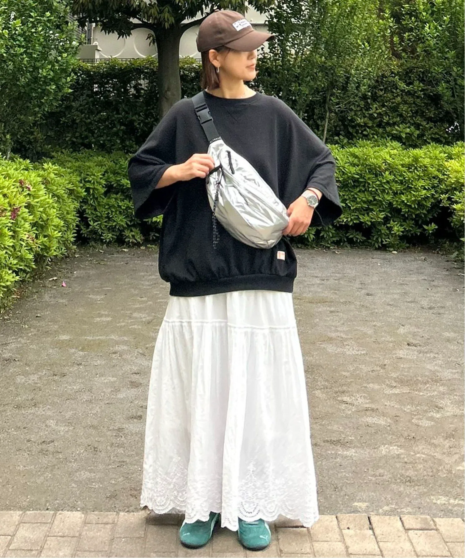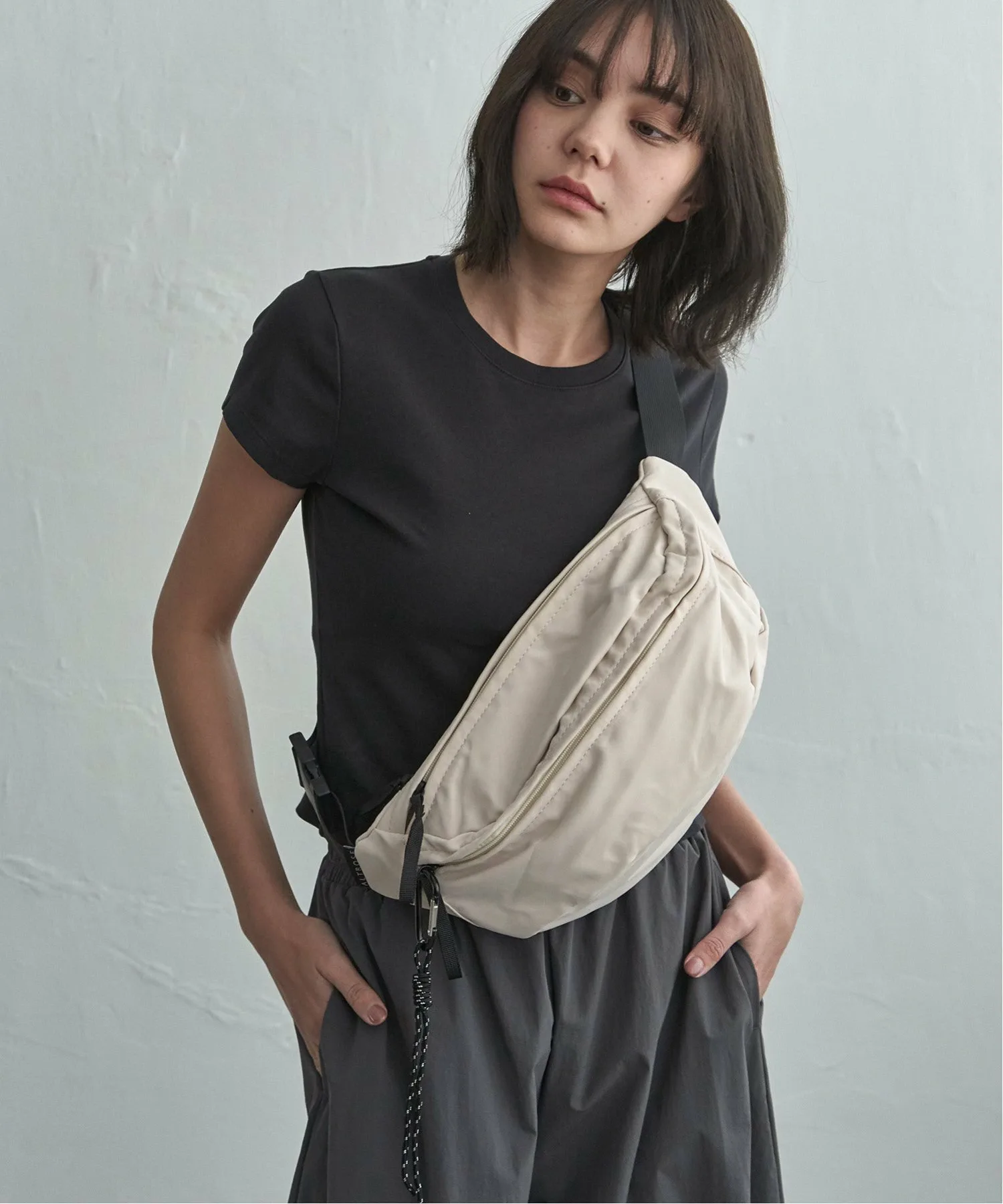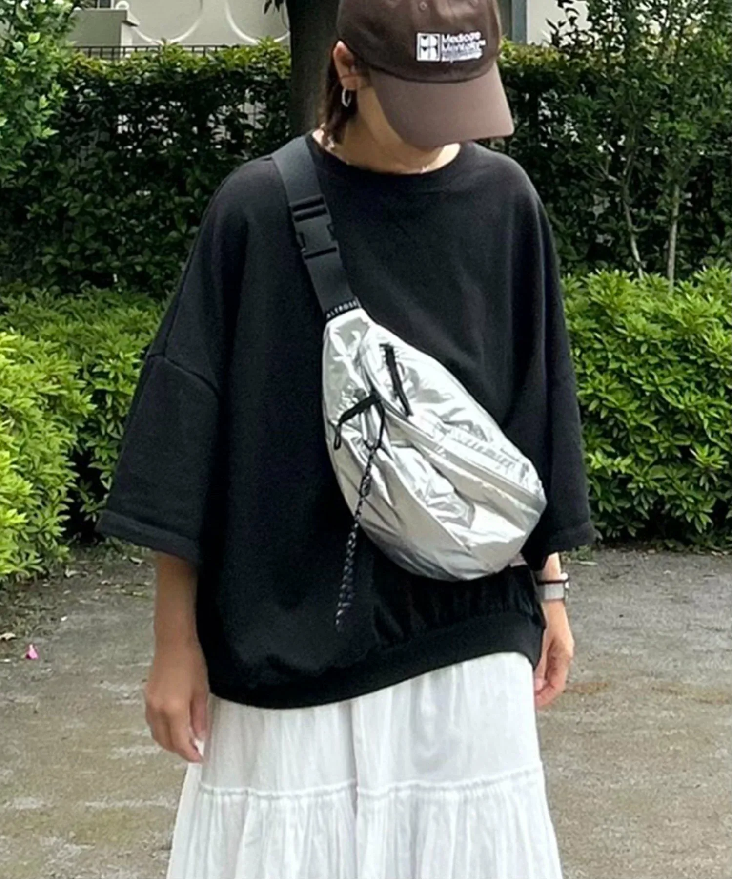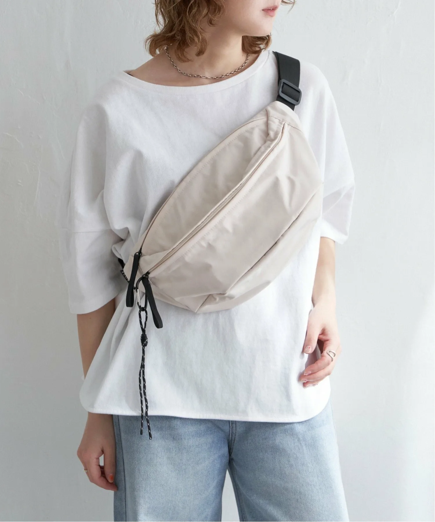Эта большая сумка через плечо вмещает много вещей. Простой дизайн делает её удобной в использовании, идеально подходящей для повседневного ношения, а также для путешествий, фестивалей и других мероприятий на открытом воздухе. [Подробности] В комплекте есть карабин для ключей и других предметов. В неё можно повесить ПЭТ-бутылку объёмом 500 мл в горизонтальном положении. Также в ней два внутренних открытых кармана и два внешних кармана на молнии. [Цвет] Доступна в универсальном белом и чёрном цветах. [Сочетание] Сочетайте её с платьем-футболкой и спортивными сандалиями для создания образа на открытом воздухе летом или со свитшотом или трикотажным платьем осенью и зимой. Она идеально подходит для всех сезонов. Также она станет отличным акцентом для более женственного образа, например, с облегающей юбкой или юбкой-русалкой. Следите за нашими новинками в Instagram, чтобы увидеть новые товары и образы.