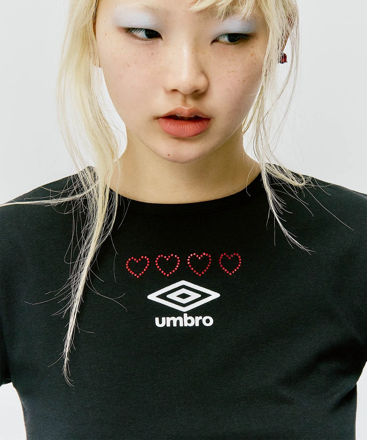 Футболка с логотипом, украшенная сверкающими стразами различных цветов и узоров.