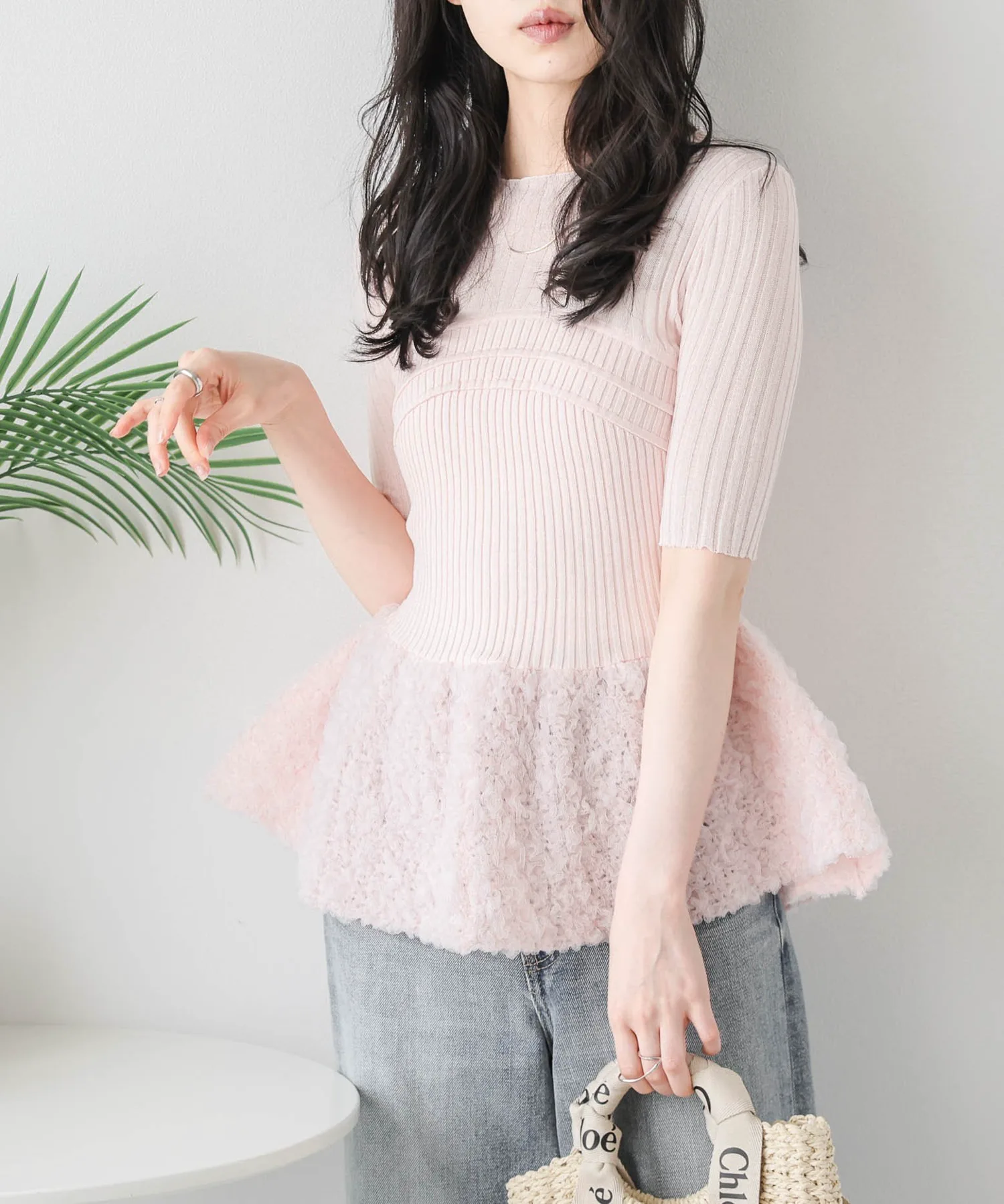 Этот невероятно стильный трикотажный топ с баской и бюстье, наполненный тщательно продуманными элементами дизайна, создает утонченный и изысканный образ.