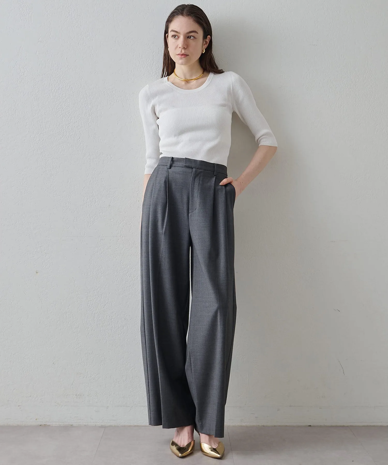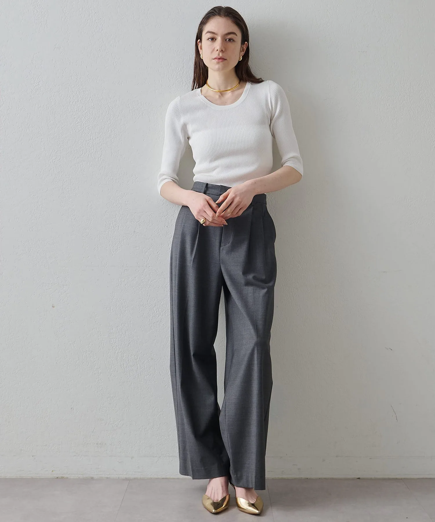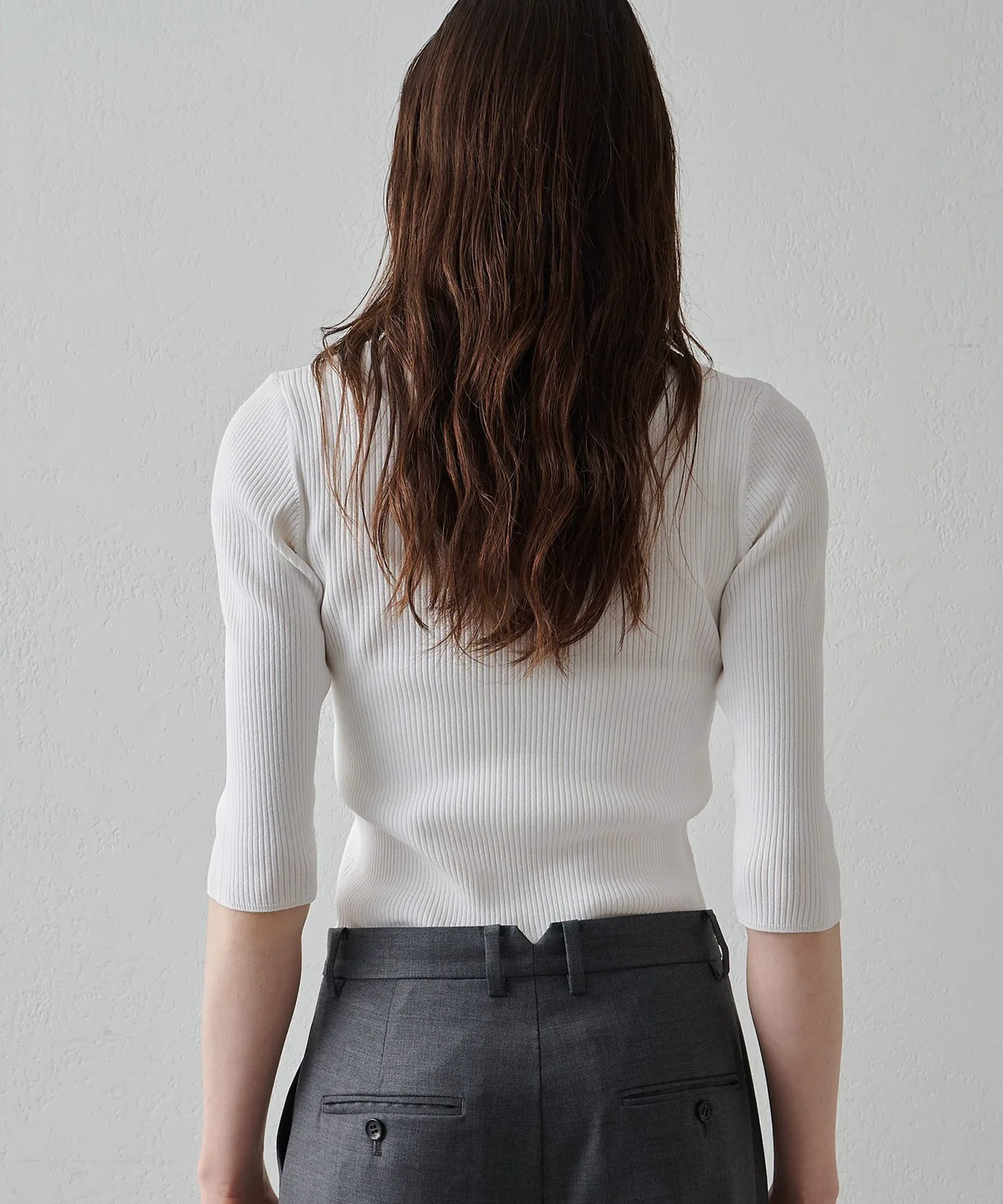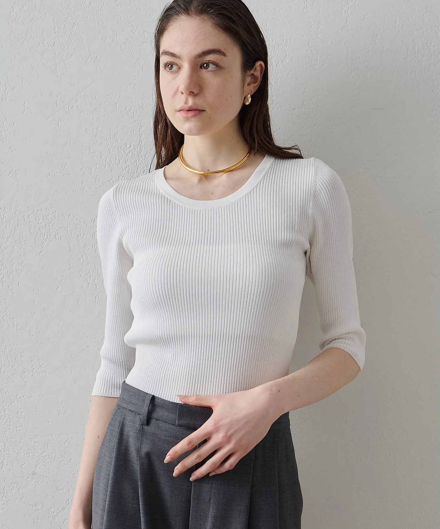 Трикотажная блузка в рубчик с рукавами три четверти, легко вписывающаяся в различные стили.