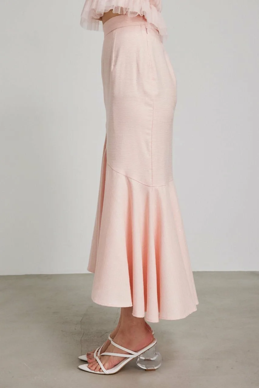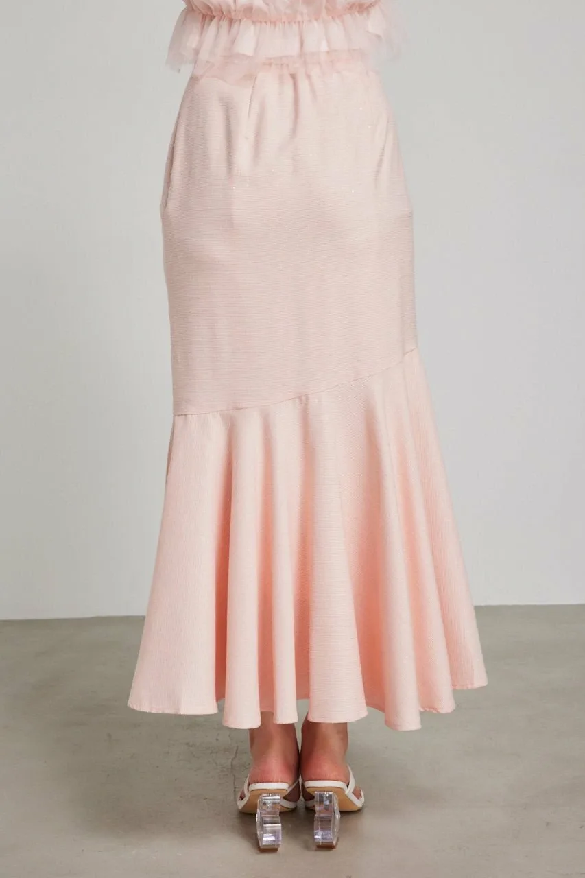 Юбка идеально облегает талию, а оборки по низу добавляют движения при каждом шаге, создавая гламурный образ уже при ношении.