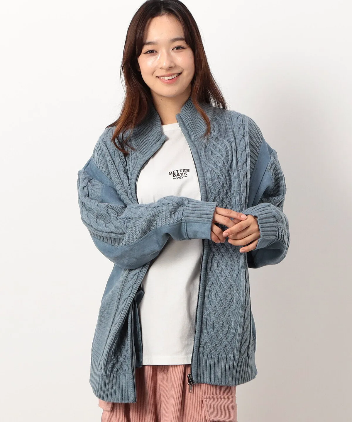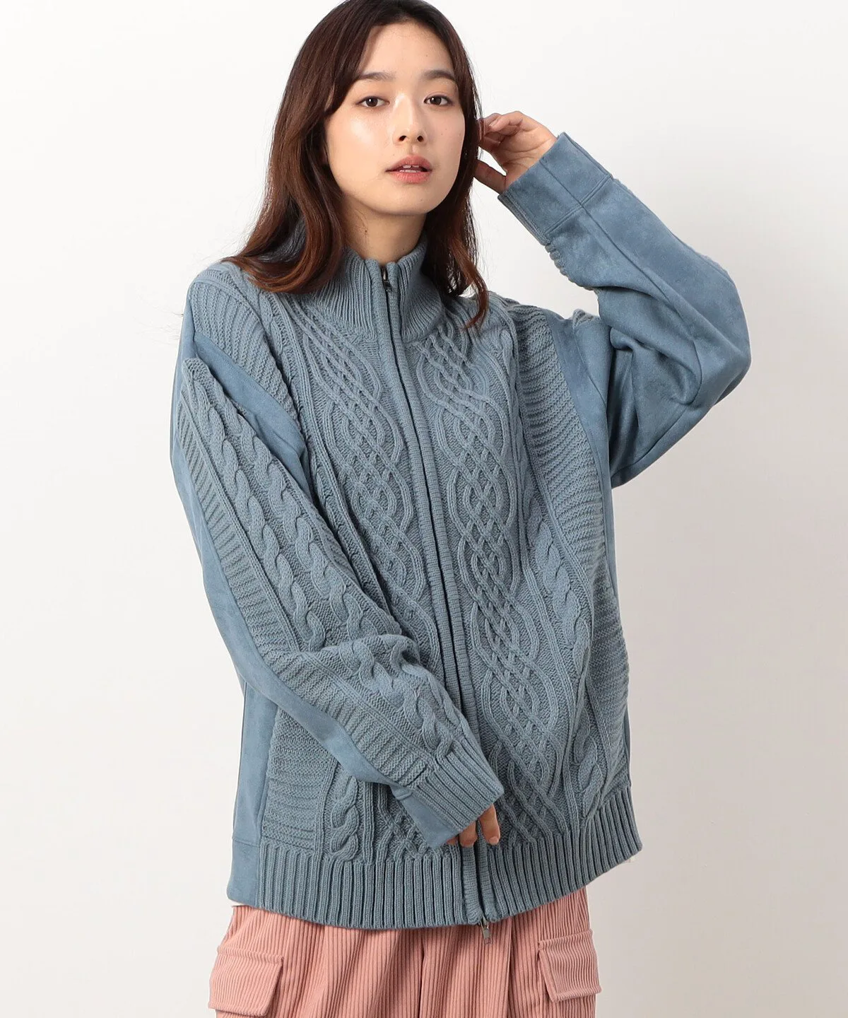 Эта вязка имеет слегка ворсистую поверхность, создающую ощущение замши.
