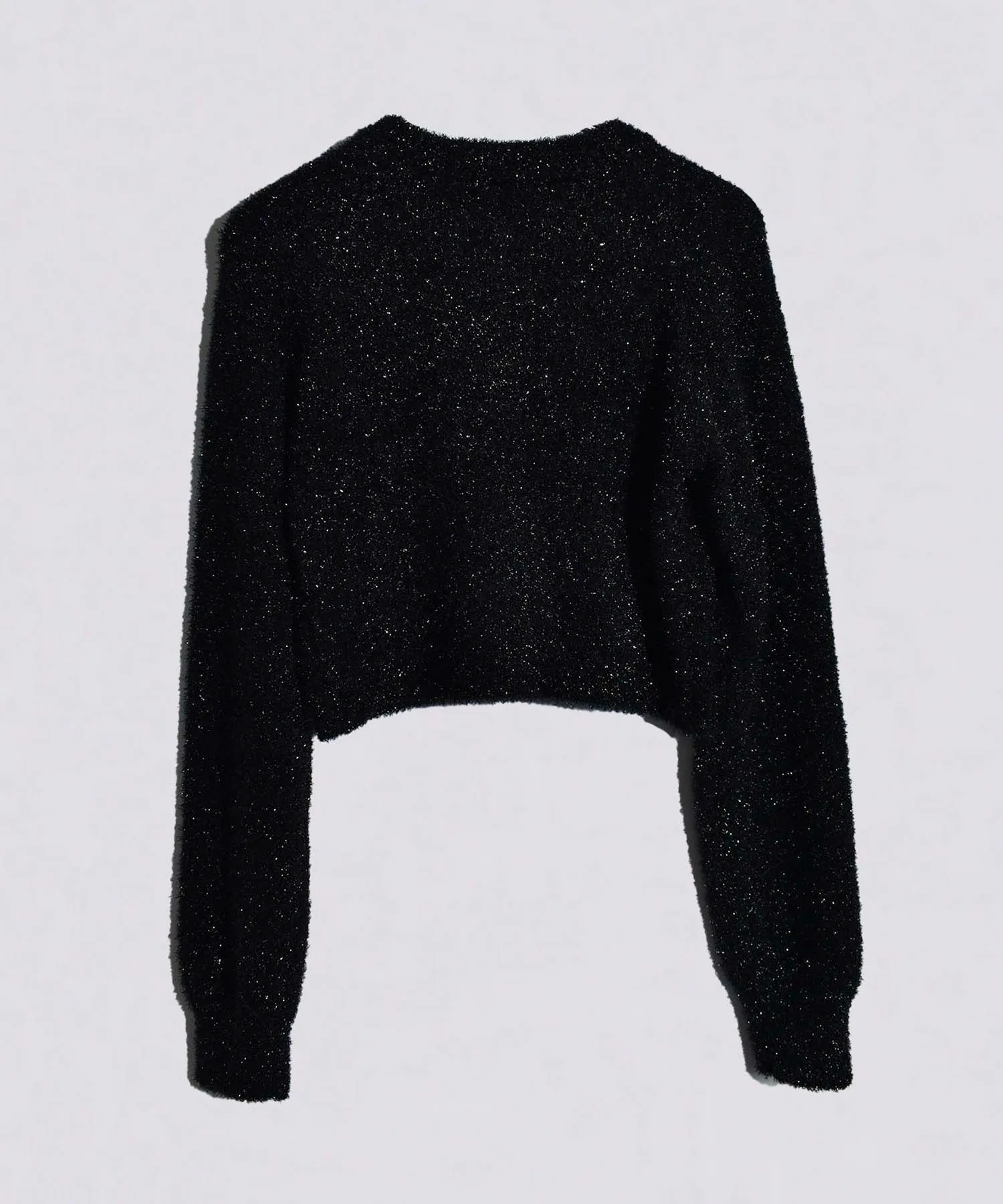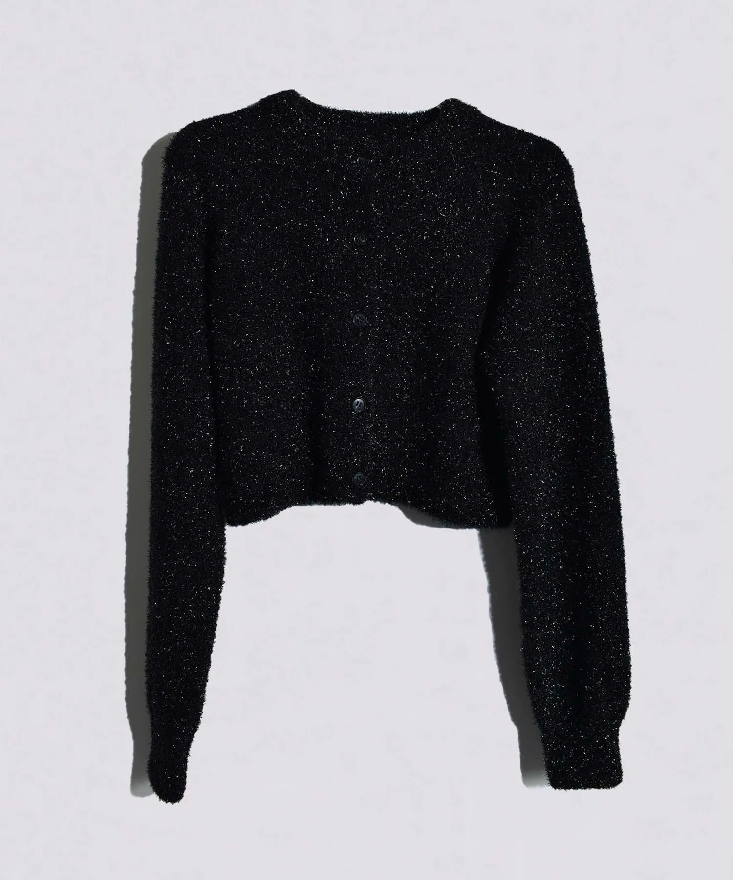 Кардиган с ворсом, сотканный из элегантно сверкающих блесток.Благодаря сочетанию блестящей и пушистой пряжи, он имеет пышную текстуру.Идеальная короткая длина, которую можно сочетать с любыми брюками и юбками.Длинные, объемные рукава — изюминка модели.