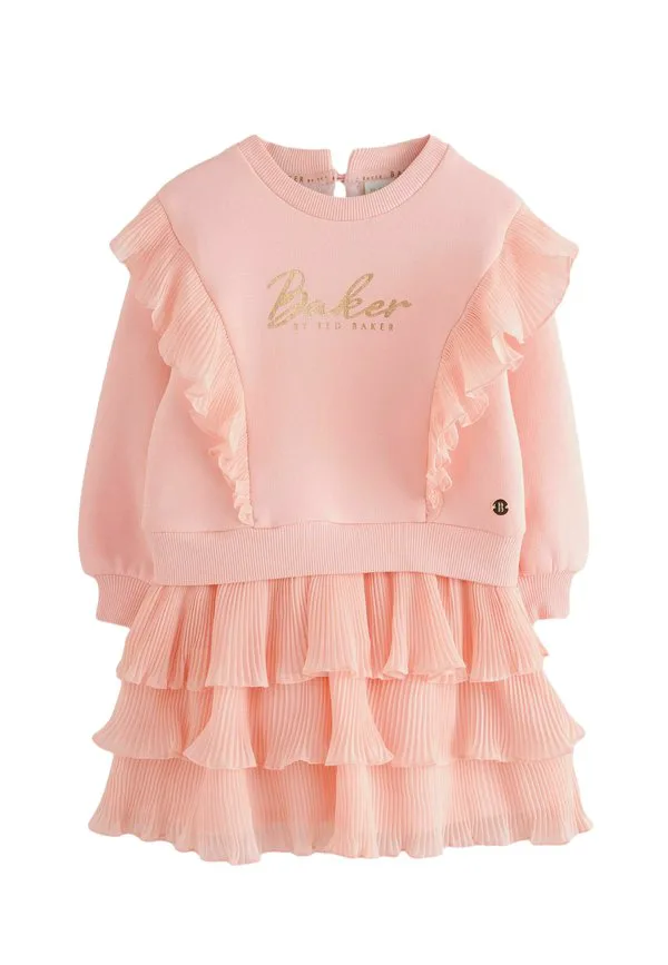 Платье прямого кроя с оборками на юбке, нарядное. повседневное платье. Baker By Ted Baker, Pink