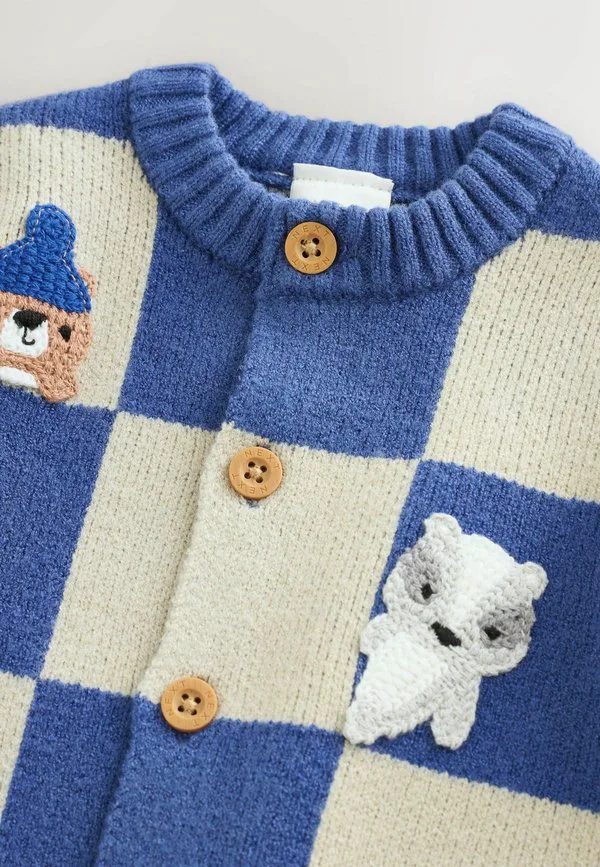 Кардиган прямого кроя Next, Blue Checkerboard Embroidered Character