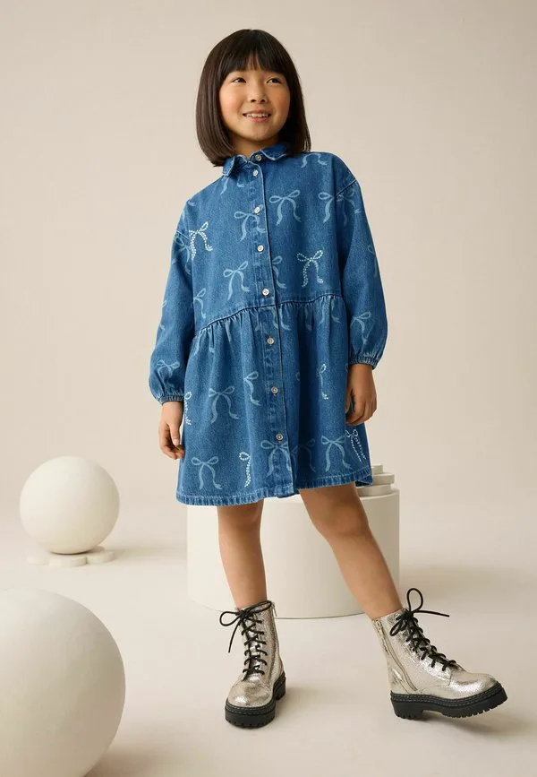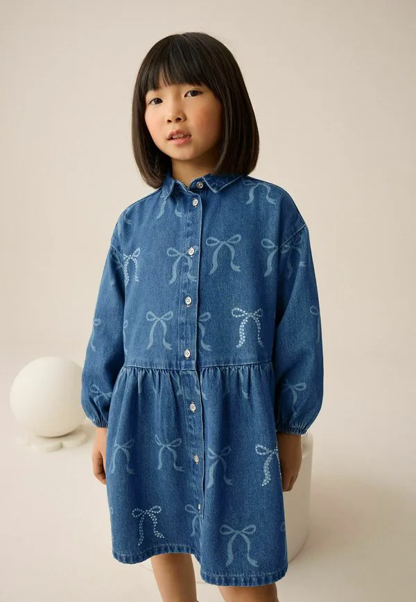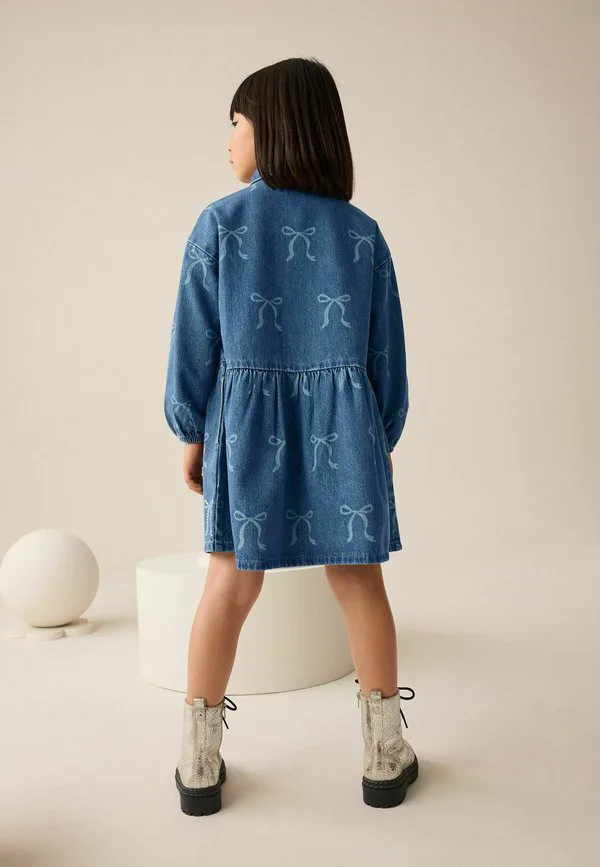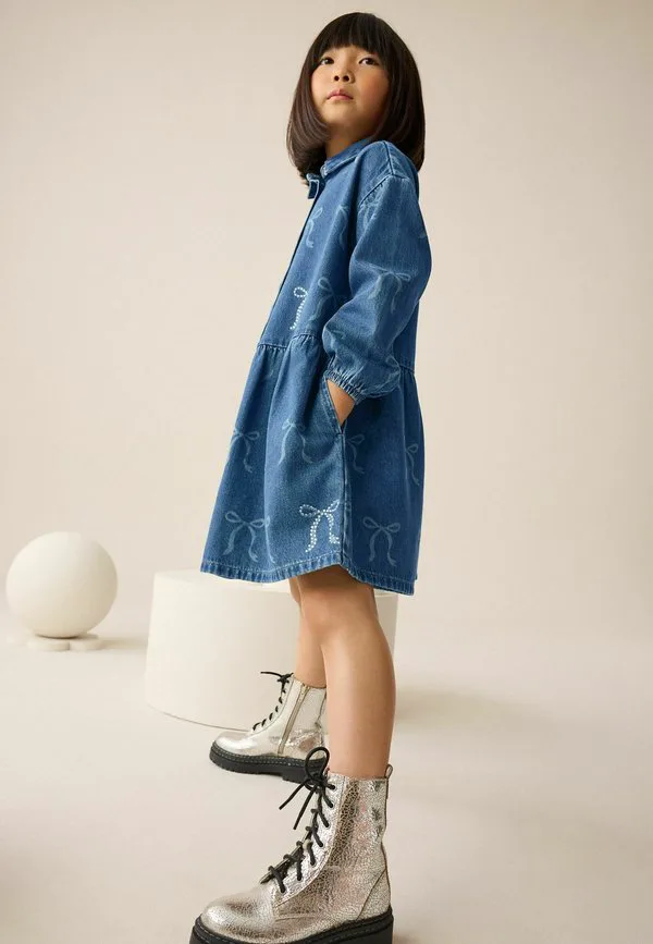 Джинсовое платье прямого кроя с бантом и стразами Next, Blue Denim