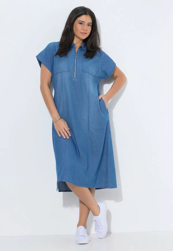 Джинсовое платье hemdkragen на молнии halbar Ulla Popken, Blue Denim