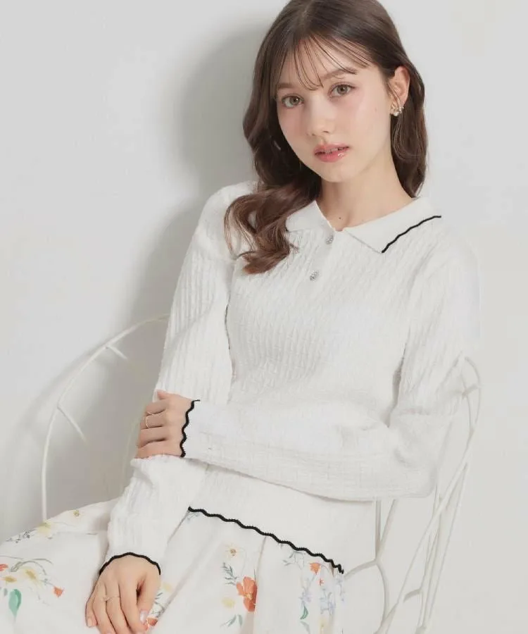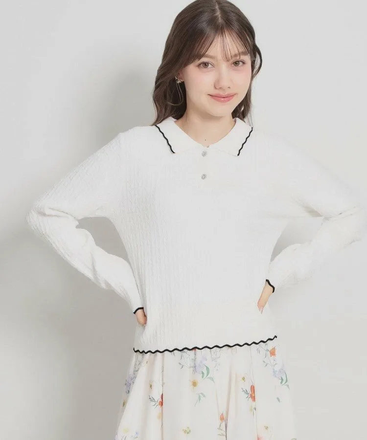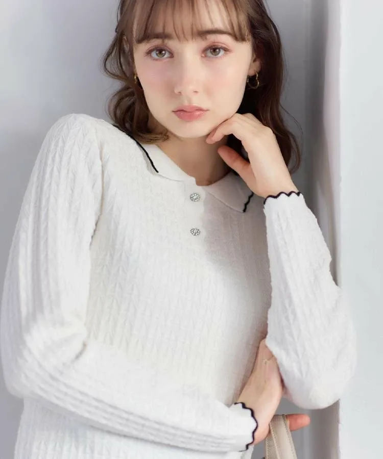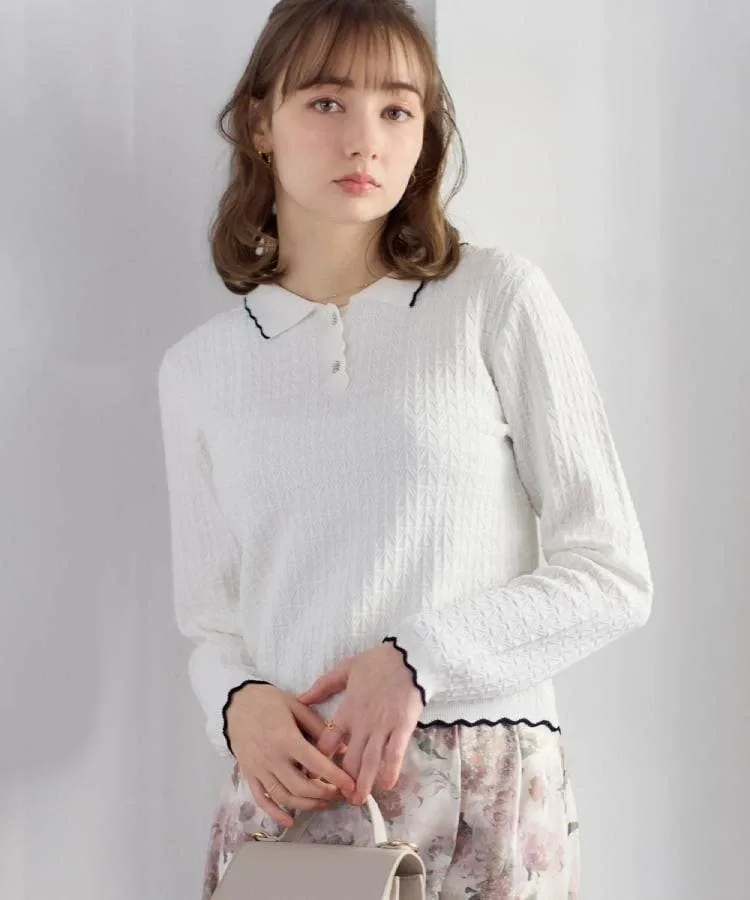 Эта милая вязаная рубашка с воротничком украшена геометрическим узором. Изюминкой является воротник и нижний край, напоминающие кружево пико. Небольшой воротничок добавляет женственности. Длина позволяет стильно выглядеть как заправленной, так и навыпуск. Рубашка также украшена пуговицами с драгоценными камнями. Материал: Изготовлена из смеси вискозы и полиэстера, эта пряжа мягкая на ощупь, но при этом плотная. Освещение может исказить фактический цвет. Также цвет реального изделия может немного отличаться от изображения из-за условий освещения. Изображение также может немного отличаться от фактического цвета в зависимости от настроек вашего компьютера или смартфона. Комментарии сотрудников: Шино (164 см) Пуговицы с драгоценными камнями добавляют элегантности этой рубашке-поло. Она естественно освежает лицо, что делает ее идеальной как для работы, так и для повседневной носки.
