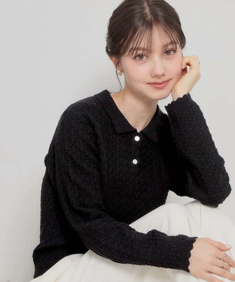 Эта милая вязаная рубашка с воротничком украшена геометрическим узором. Изюминкой является воротник и нижний край, напоминающие кружево пико. Небольшой воротничок добавляет женственности. Длина позволяет стильно выглядеть как заправленной, так и навыпуск. Рубашка также украшена пуговицами с драгоценными камнями. Материал: Изготовлена из смеси вискозы и полиэстера, эта пряжа мягкая на ощупь, но при этом плотная. Освещение может исказить фактический цвет. Также цвет реального изделия может немного отличаться от изображения из-за условий освещения. Изображение также может немного отличаться от фактического цвета в зависимости от настроек вашего компьютера или смартфона. Комментарии сотрудников: Шино (164 см) Пуговицы с драгоценными камнями добавляют элегантности этой рубашке-поло. Она естественно освежает лицо, что делает ее идеальной как для работы, так и для повседневной носки.