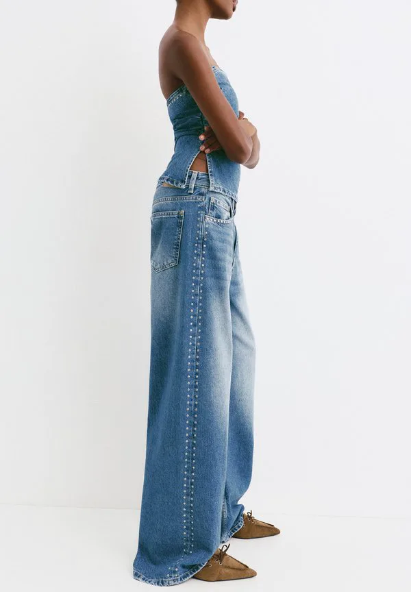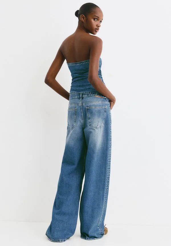 Широкие штанины с заклепками Pull&Bear, Blue Denim