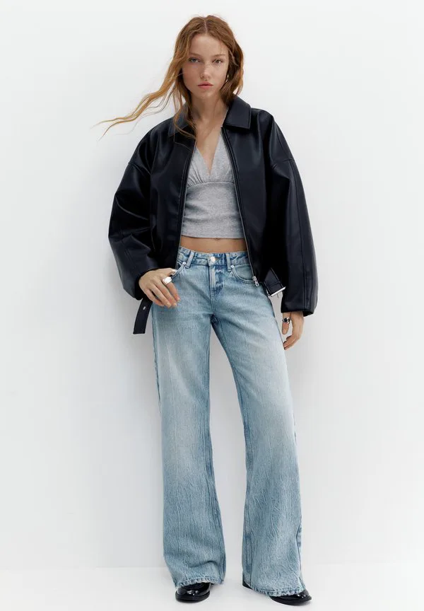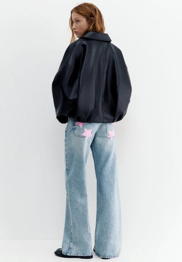 Джинсы прямого кроя со звездами Pull&Bear, Blue Denim