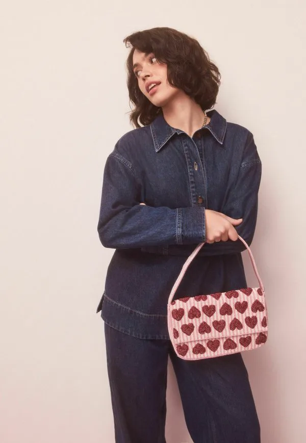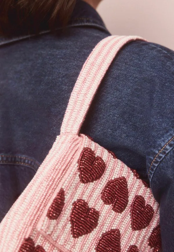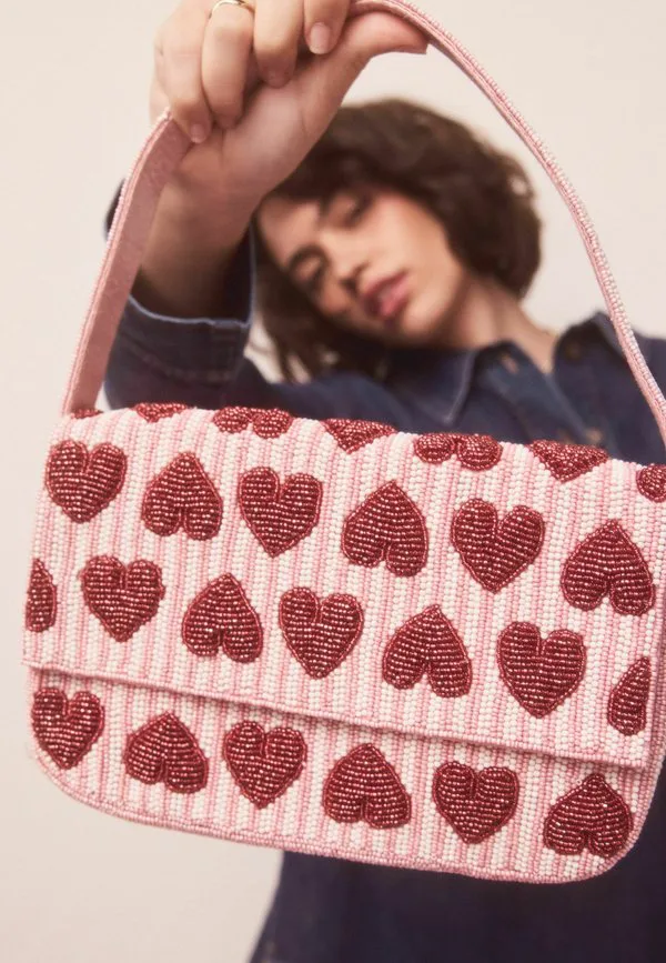 Сумочка через плечо с бусинами в форме сердца Next, Pink