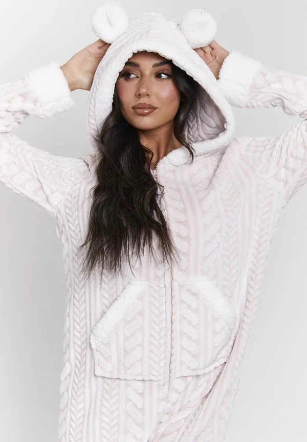 Пижама-Комбинезон с капюшоном и косами. Loungeable, Pink