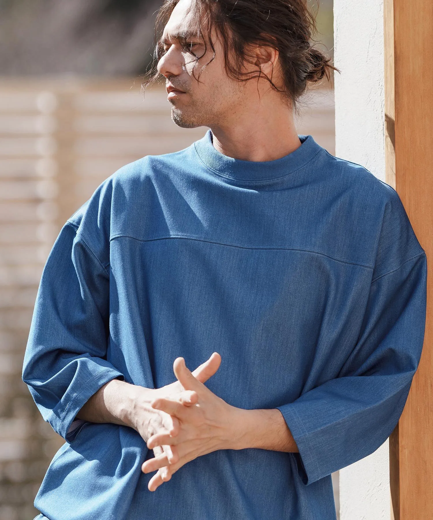 Футбольная футболка из плотной джинсовой ткани.