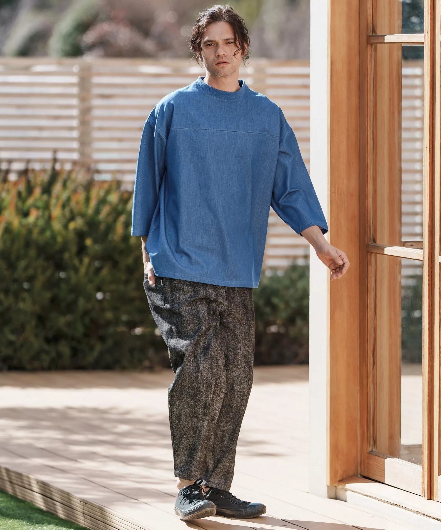 Благодаря высокой эластичности, эта вещь удобна в ношении, несмотря на внешний вид, напоминающий джинсовую ткань.