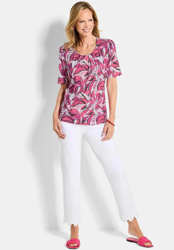 Футболка с принтом mit blätter Goldner, Pink Patterned