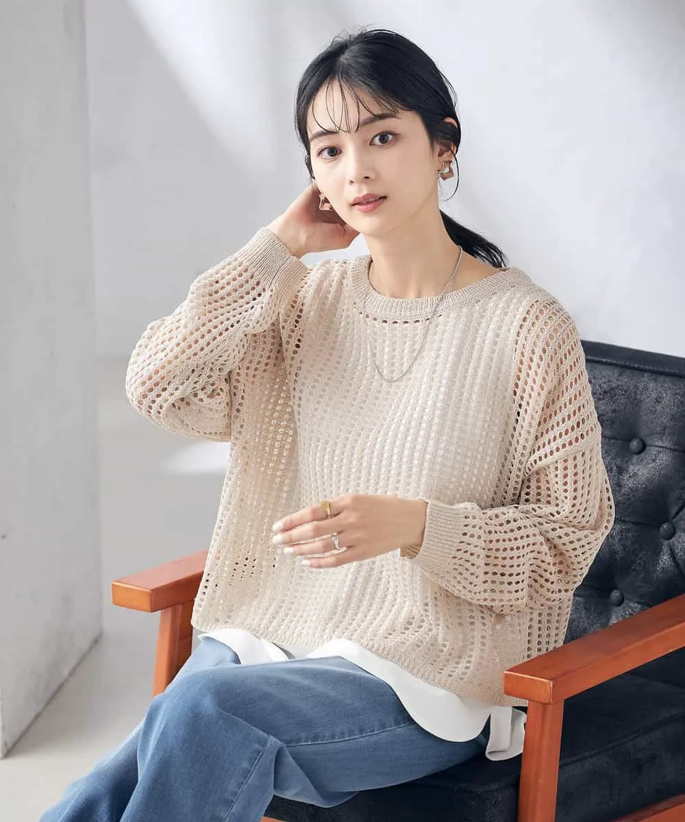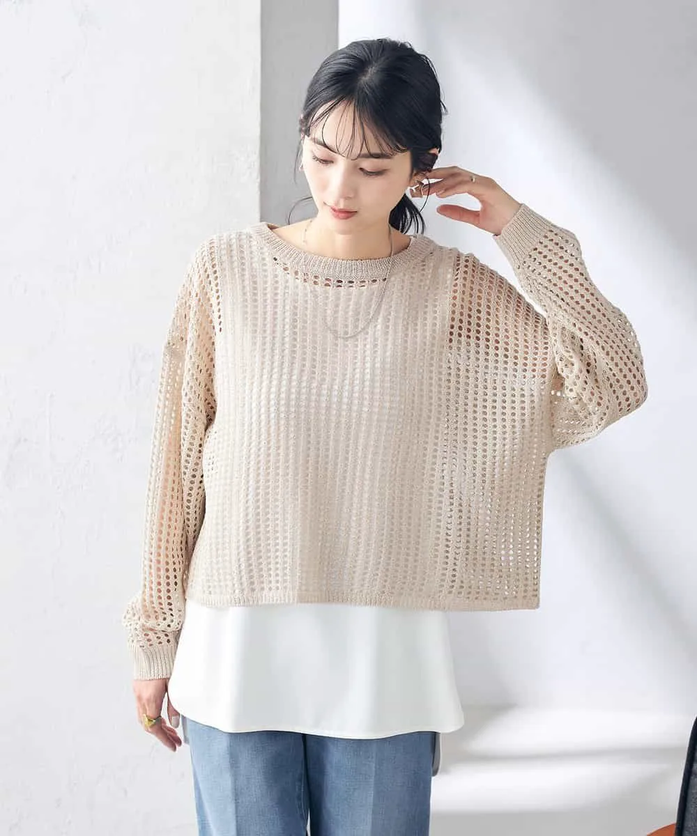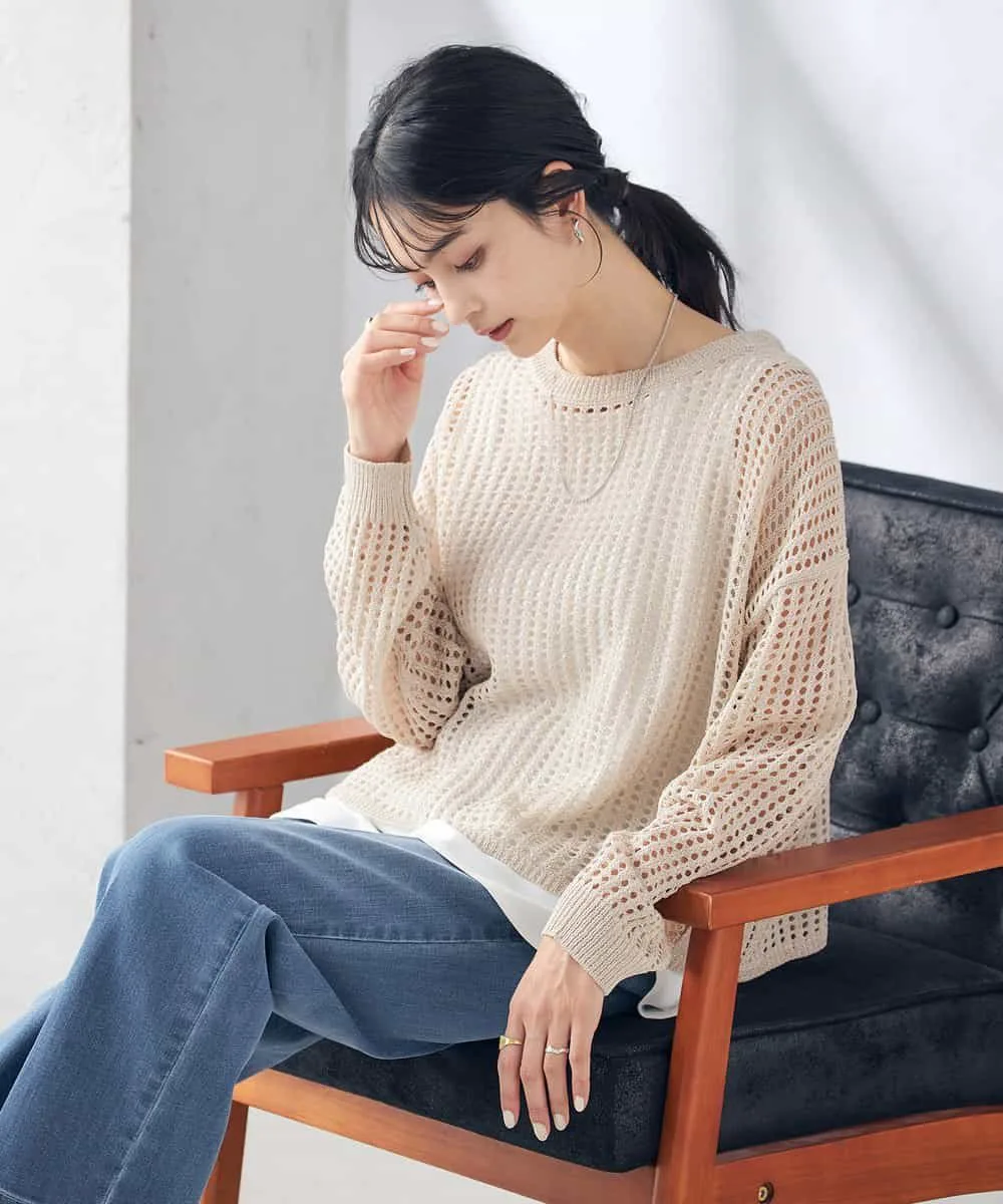 Этот прозрачный трикотаж из сетки можно сочетать с длинным топом или рубашкой для создания многослойного образа.